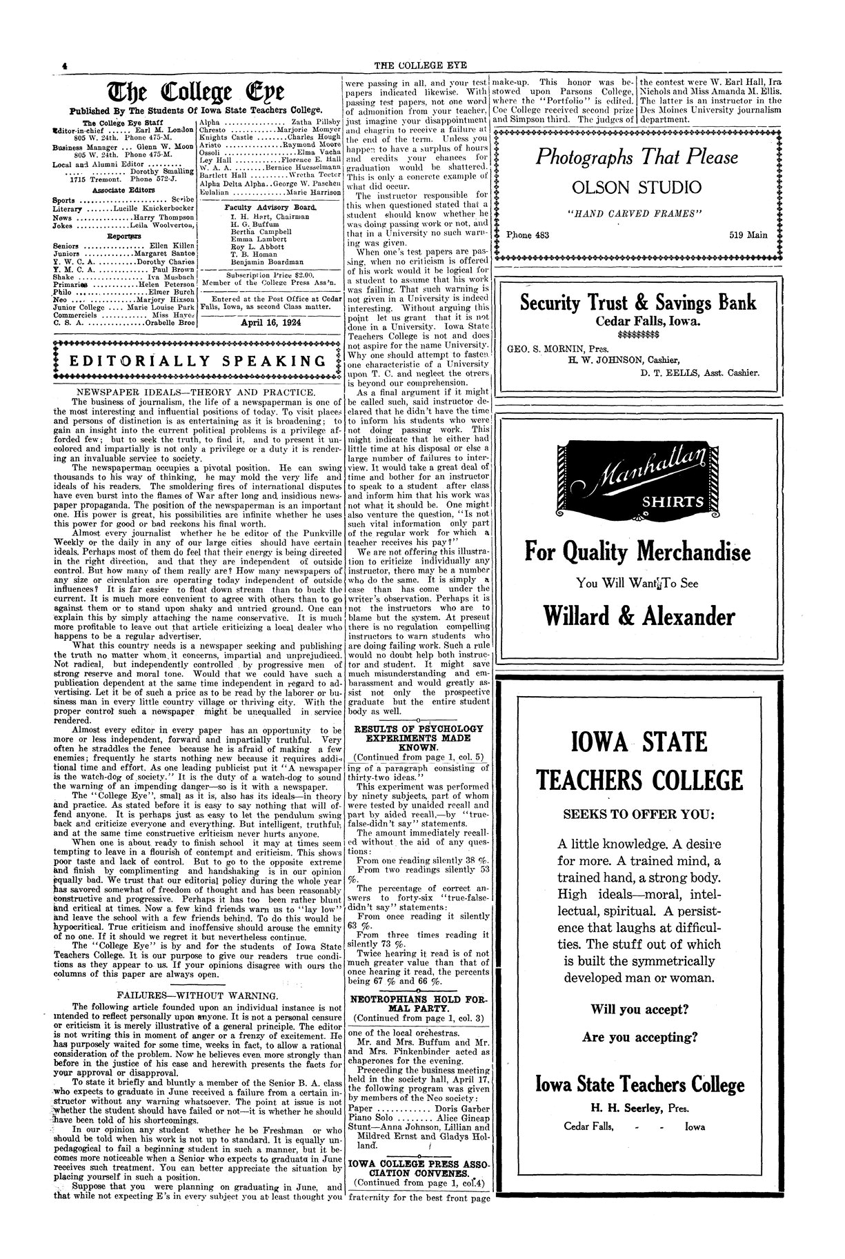| Editorially speaking; newspaper ideals--theory and practice | Journalists should seek the truth. |