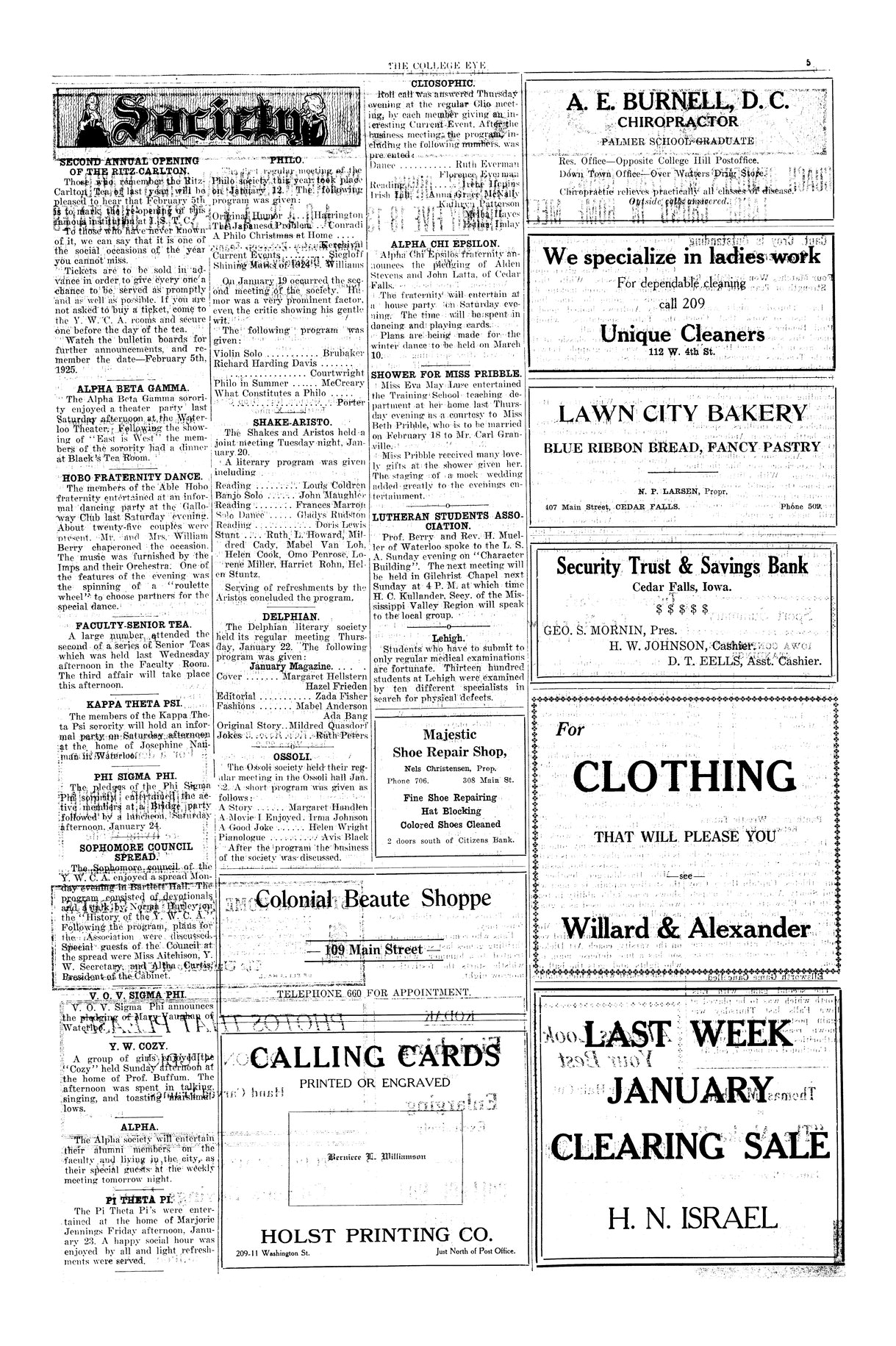 Y. W. cozy Held at the home of Professor Buffum.