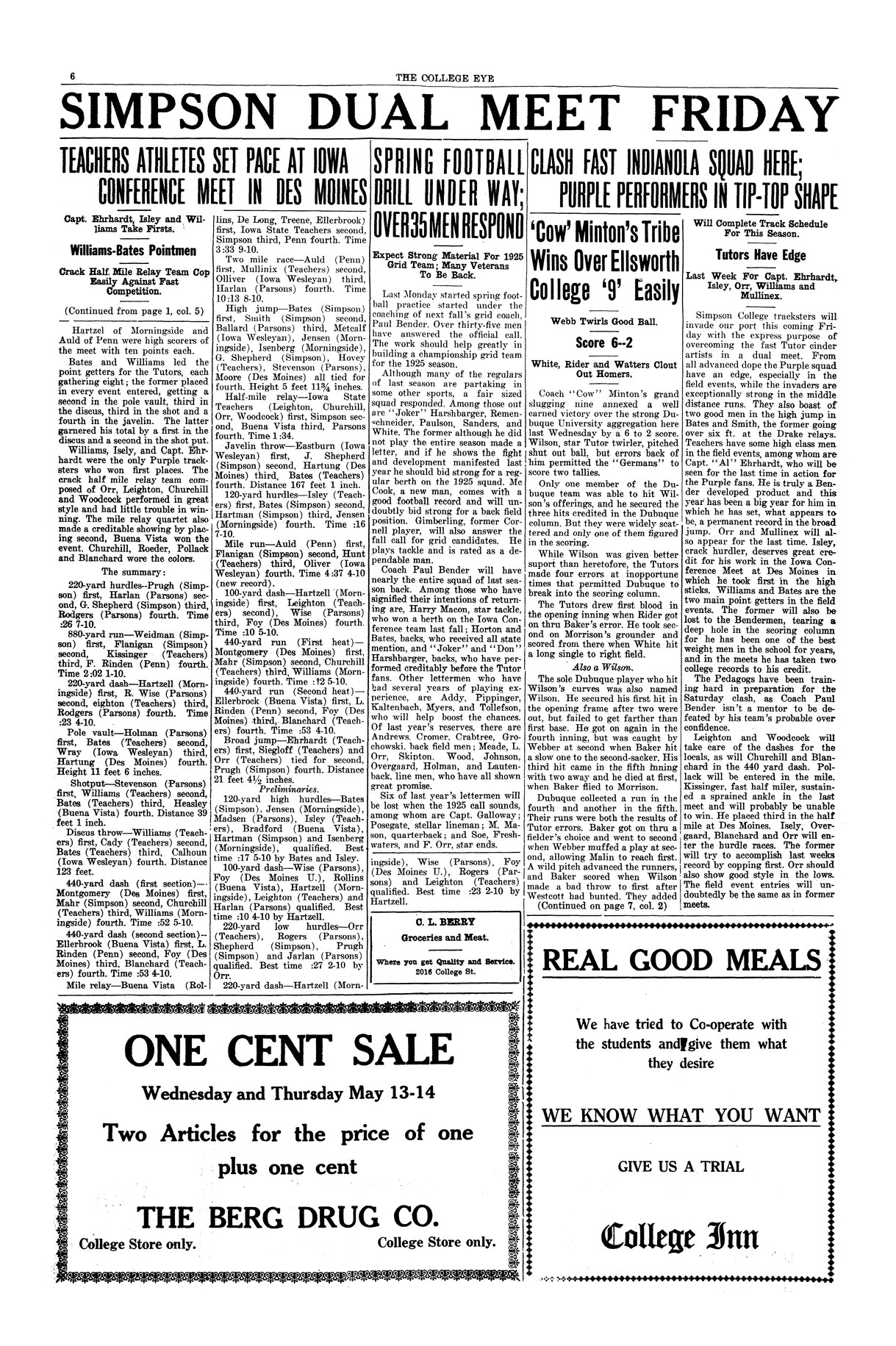 | Simpson dual meet Friday; clash fast Indianola squad here | Track team to face Simpson in last meet of the season. |