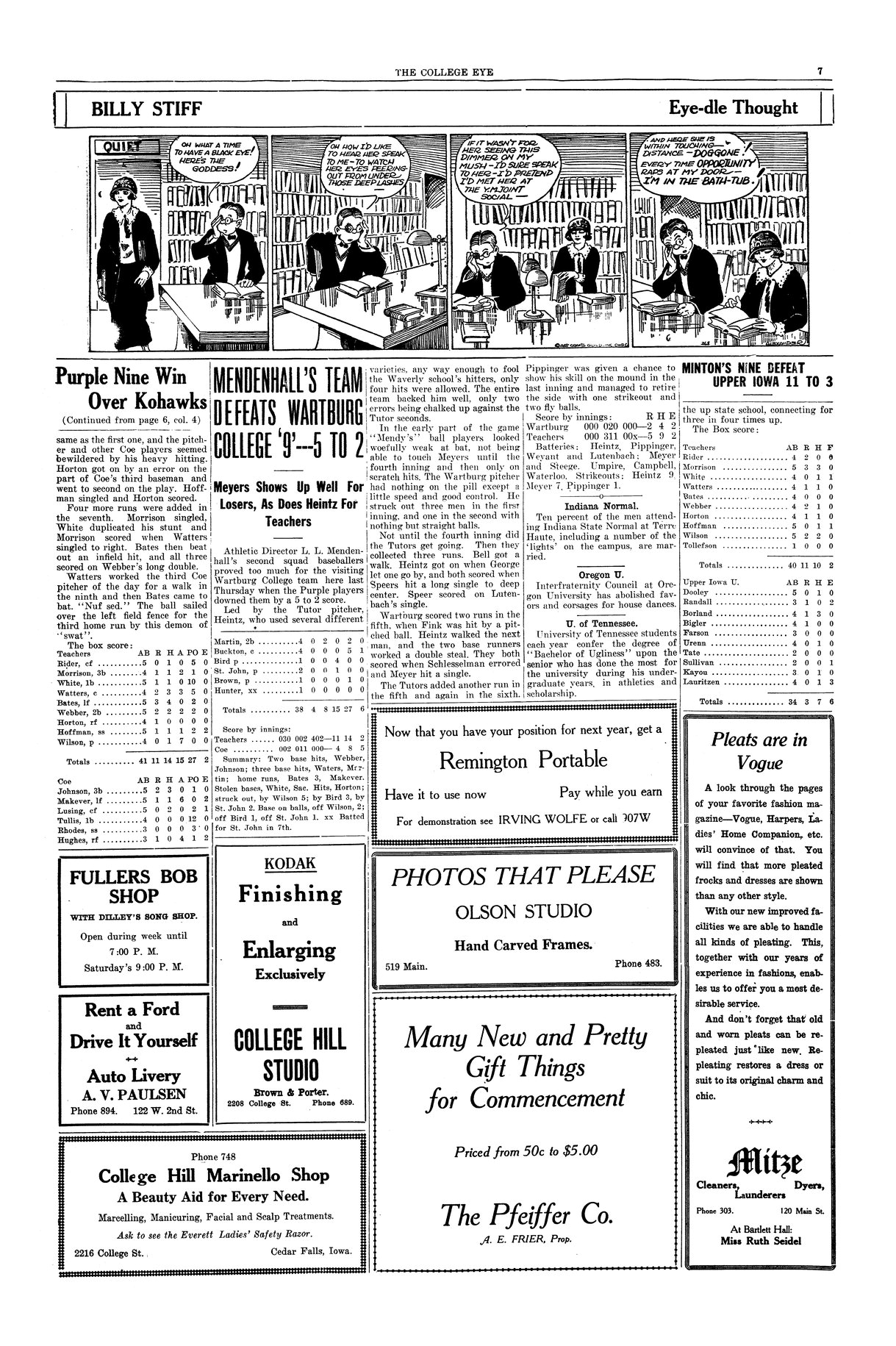 | Mendenhall's team defeats Wartburg College '9' -- 5 to 2 | Tutor second string baseball team defeats Wartburg, 5-2; box score provided. |