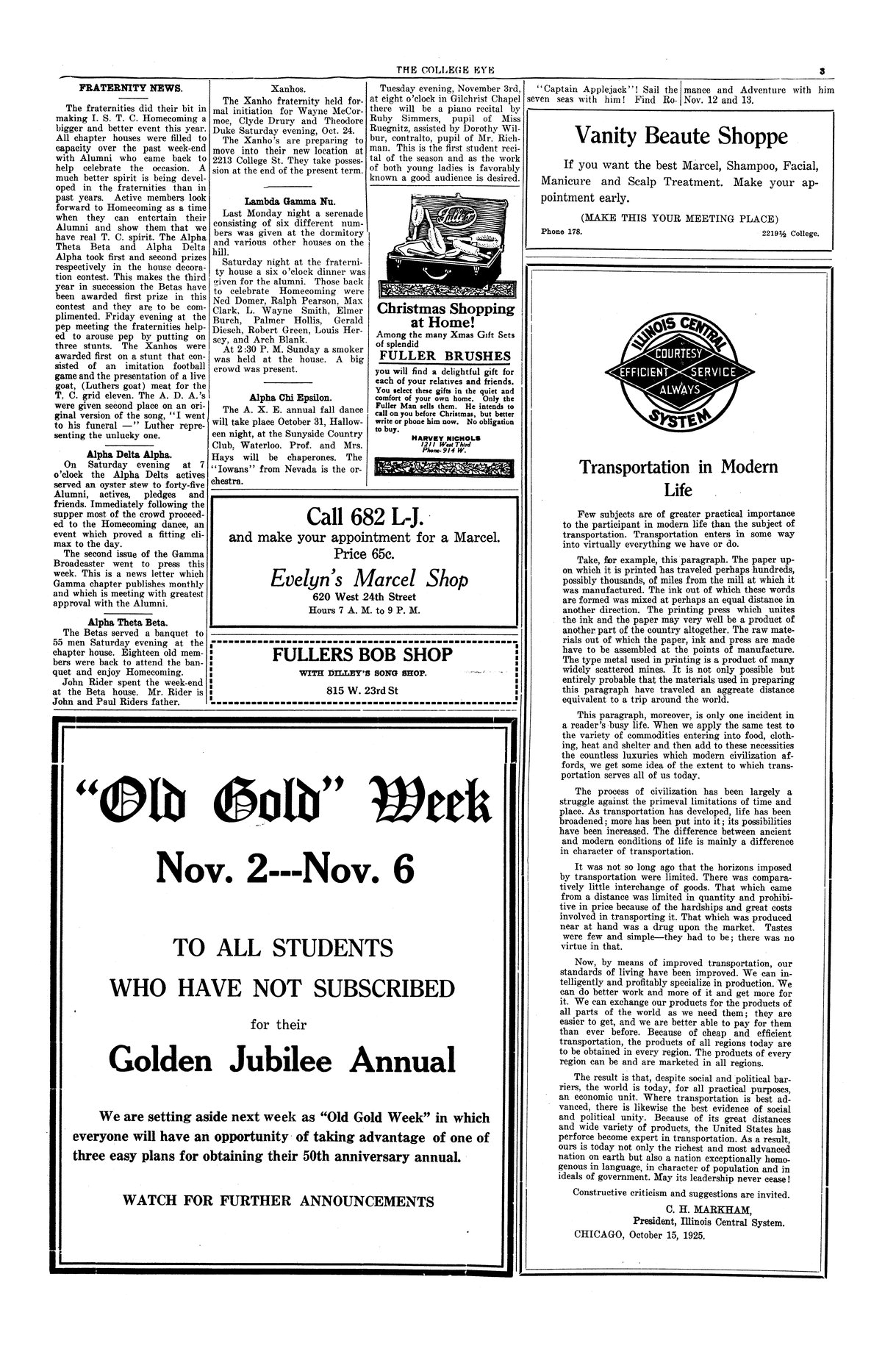 | Fraternity news | Showed good spirit during Homecoming; house decoration prize winners noted. |