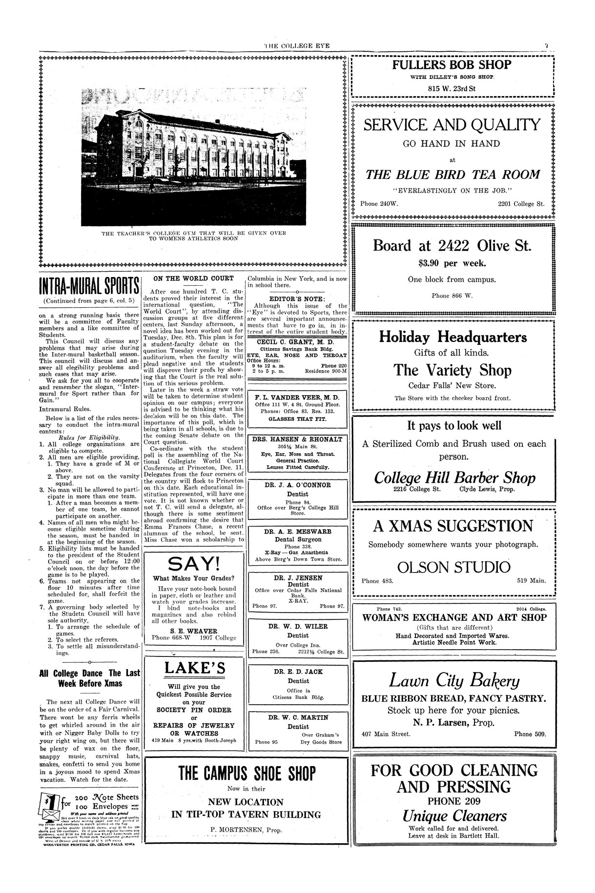 | On the World Court | Over one hundred students attended discussion sessions on the subject. |