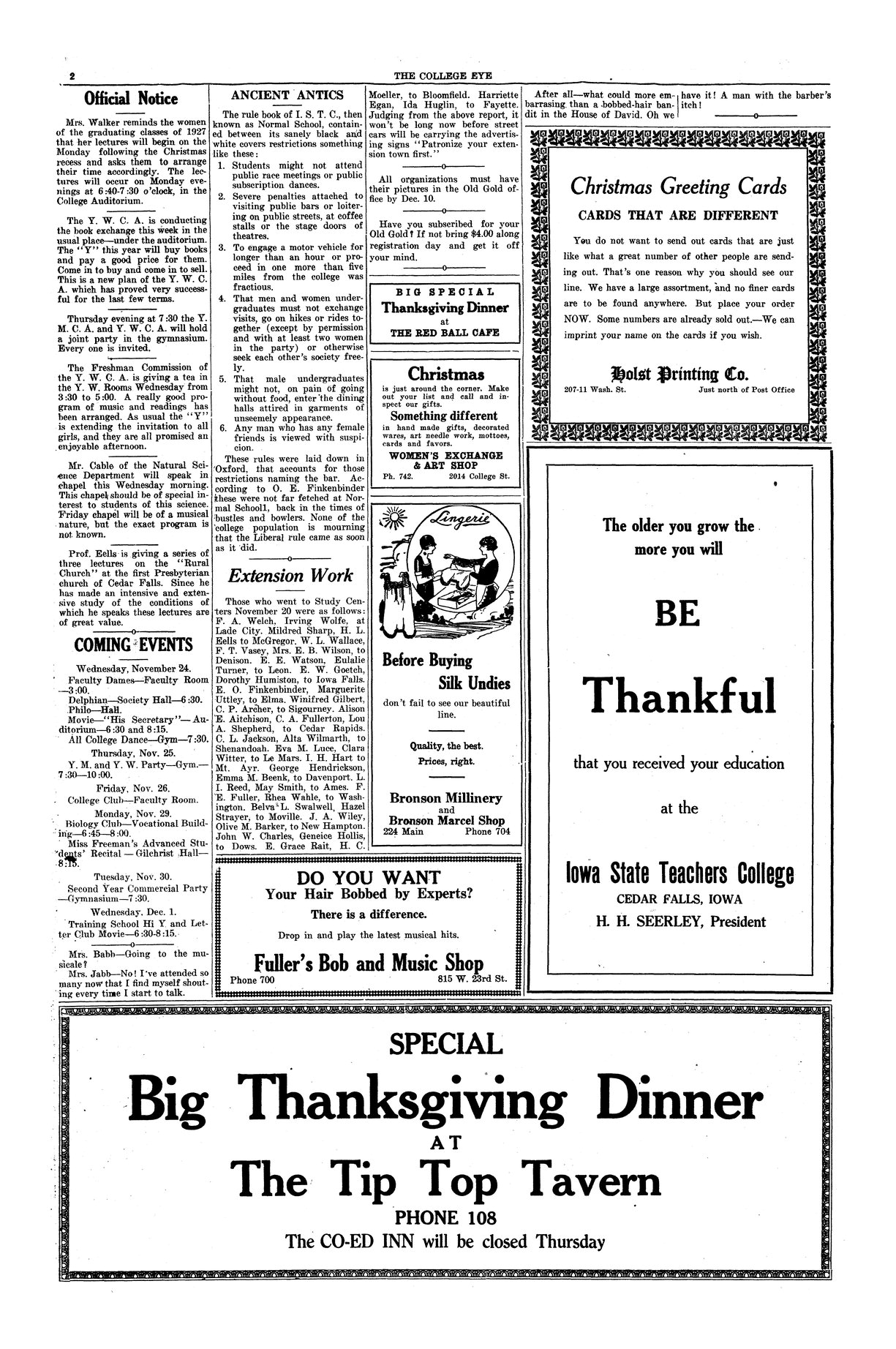 | Prof. Eells | Giving a series of lectures at the First Presbyterian Church of Cedar Falls. |