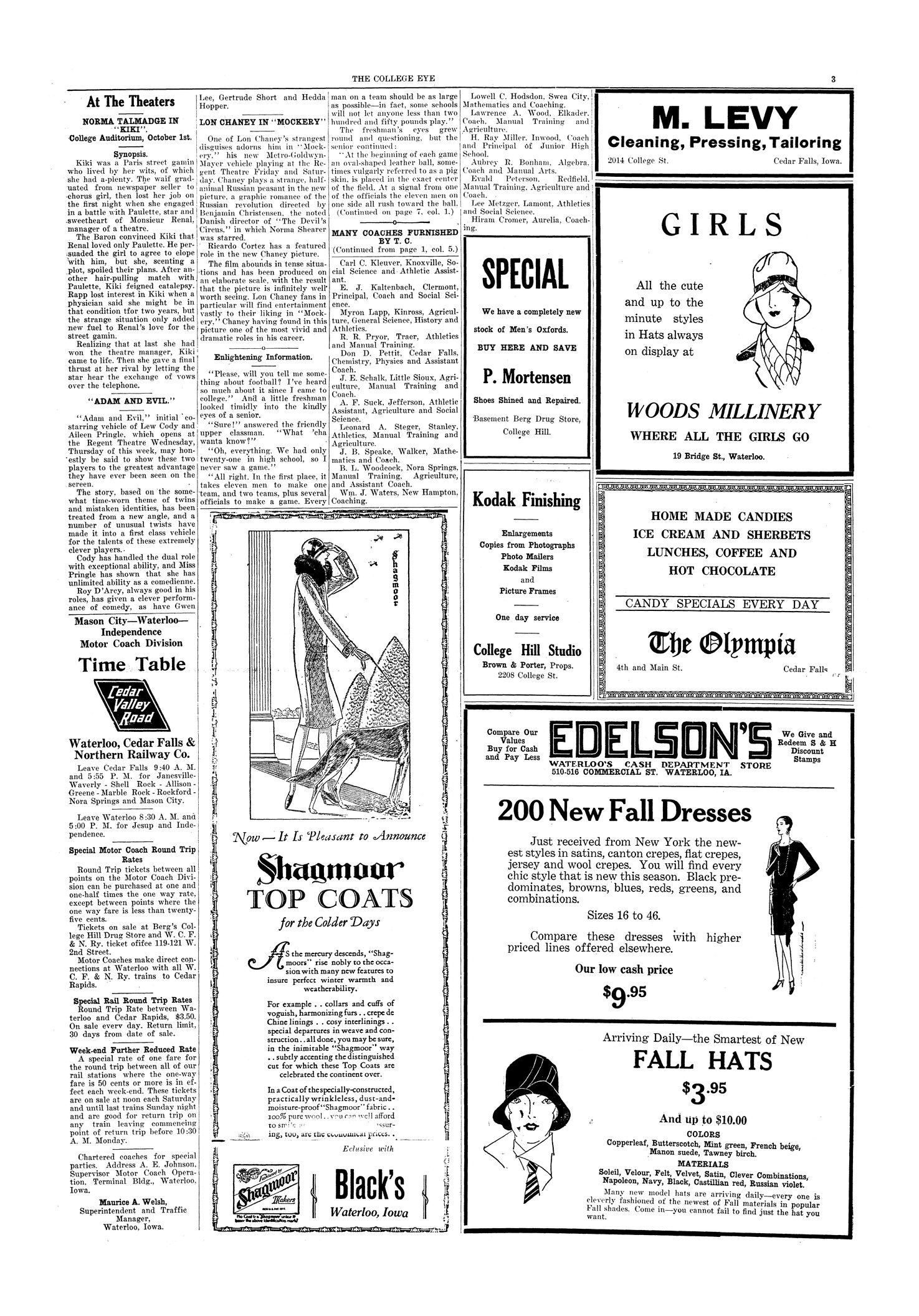 | At the Theaters; Norma Talmadge in "Kiki"; college auditorium, October 1st. | Short reviews of movies. |