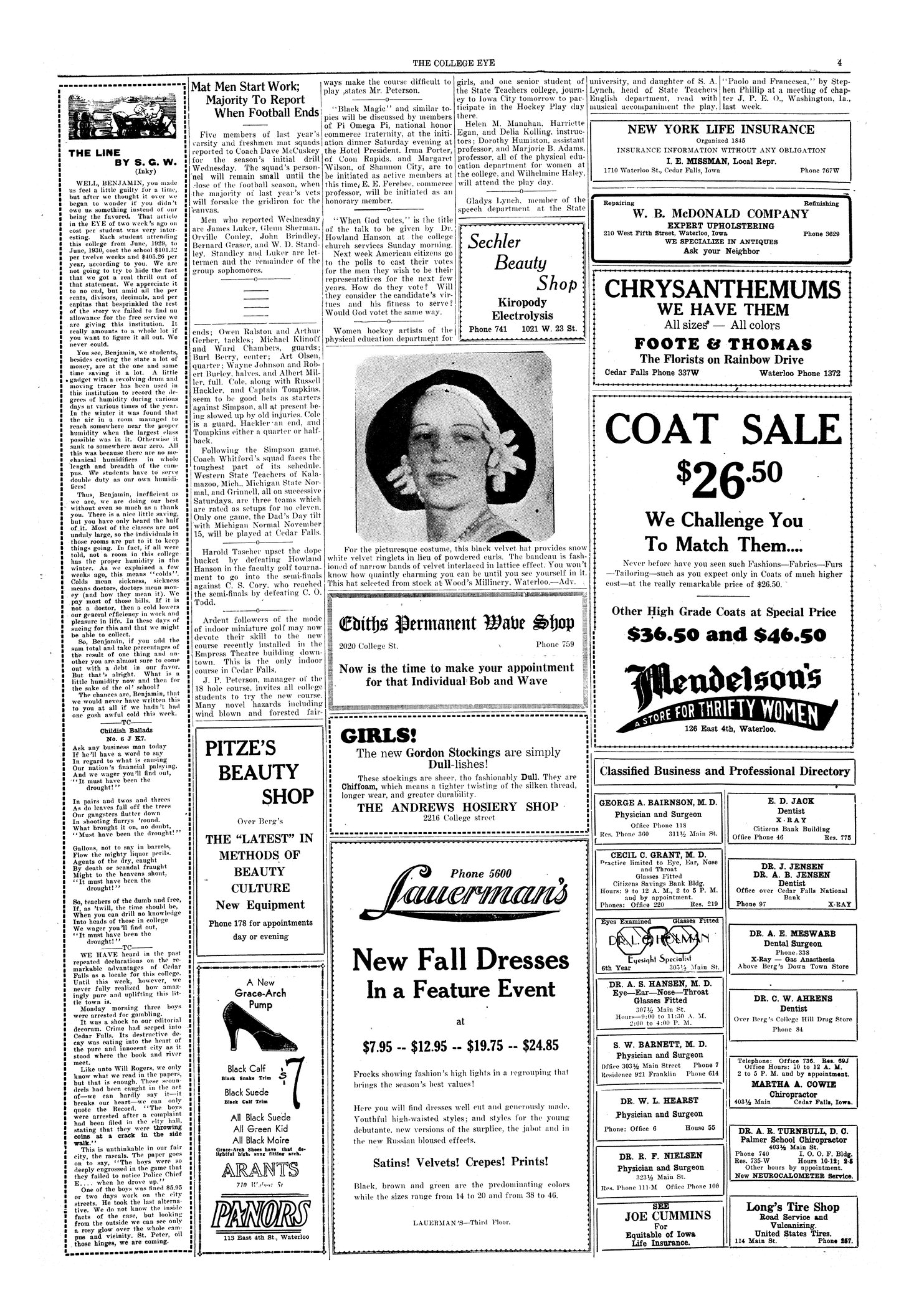 | Mat men start work; majority to report when football ends | Few report to first wrestling practice due to many veterans being on the football team; those appearing at practice listed. |