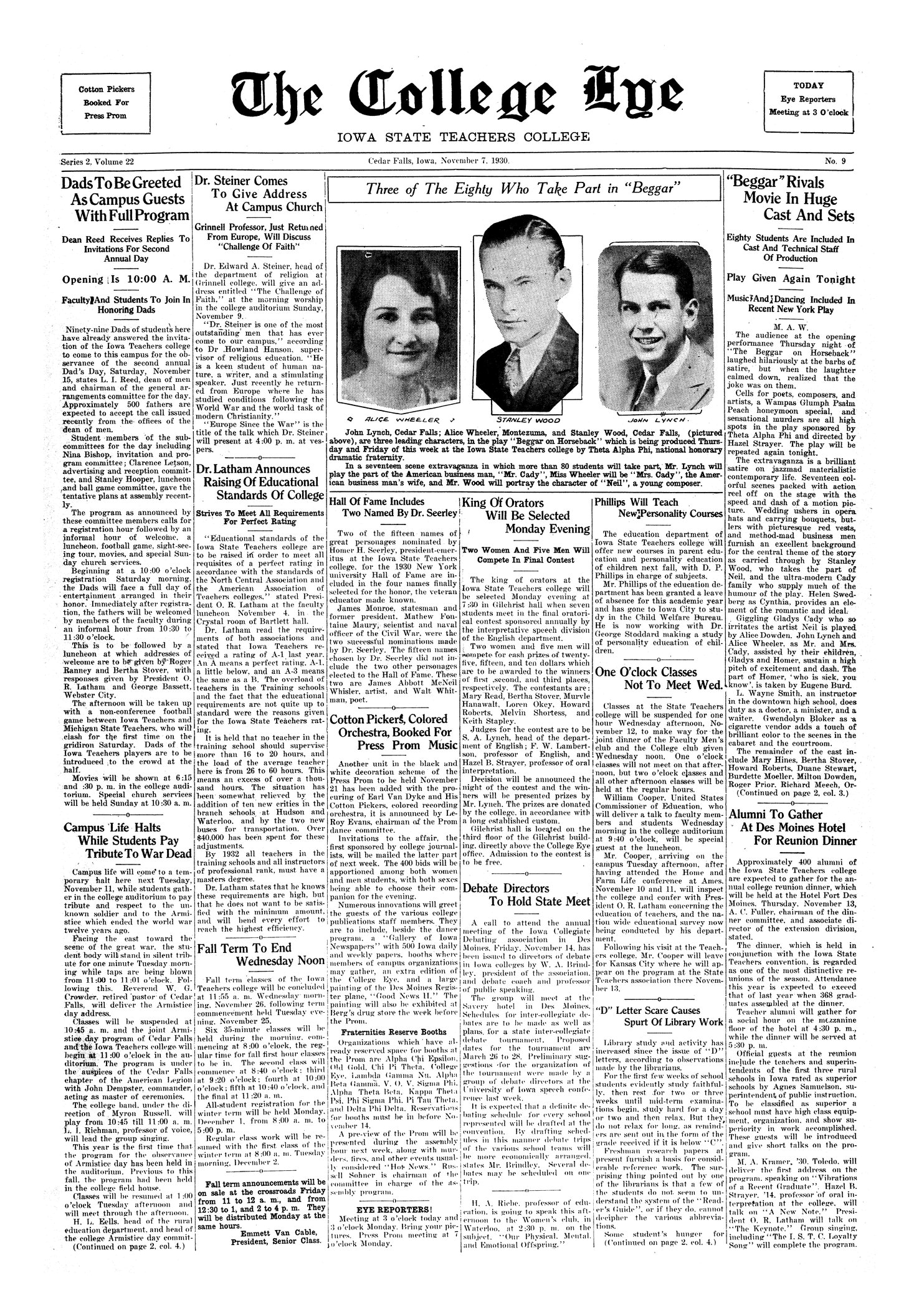 Dads to be greeted as campus guests with full program; Dean Reed receives replies to invitations for second annual Day