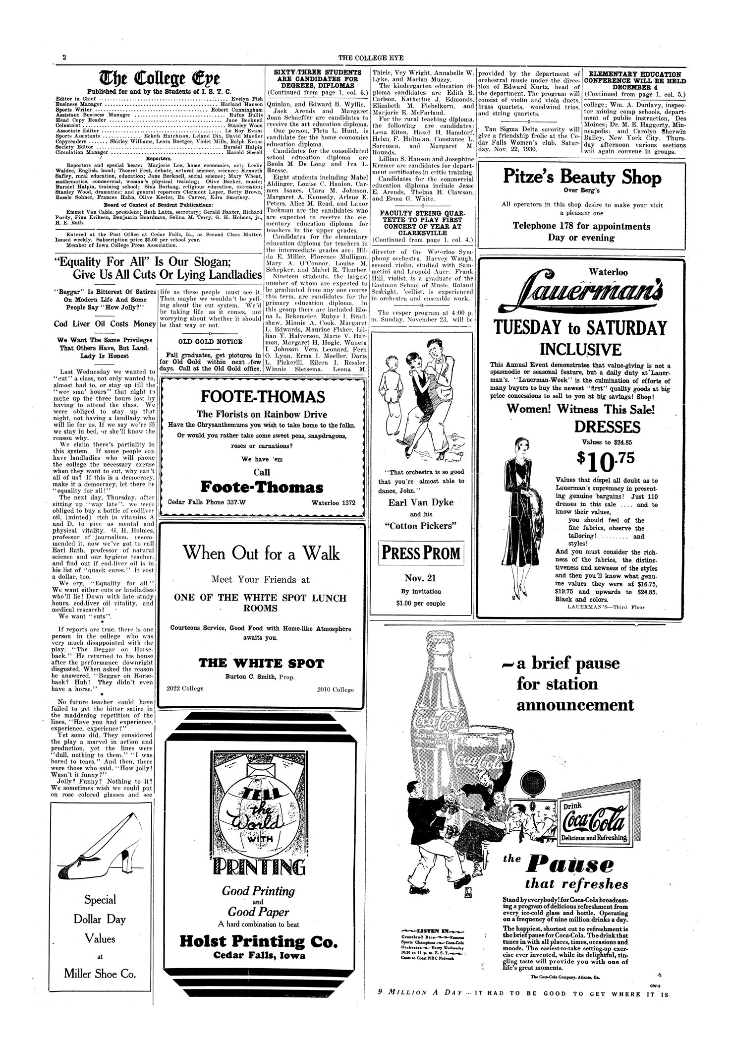 "Equality for All" is our slogan; give us all cuts or lying landladies Continuation in series of editorials on class attendance.
