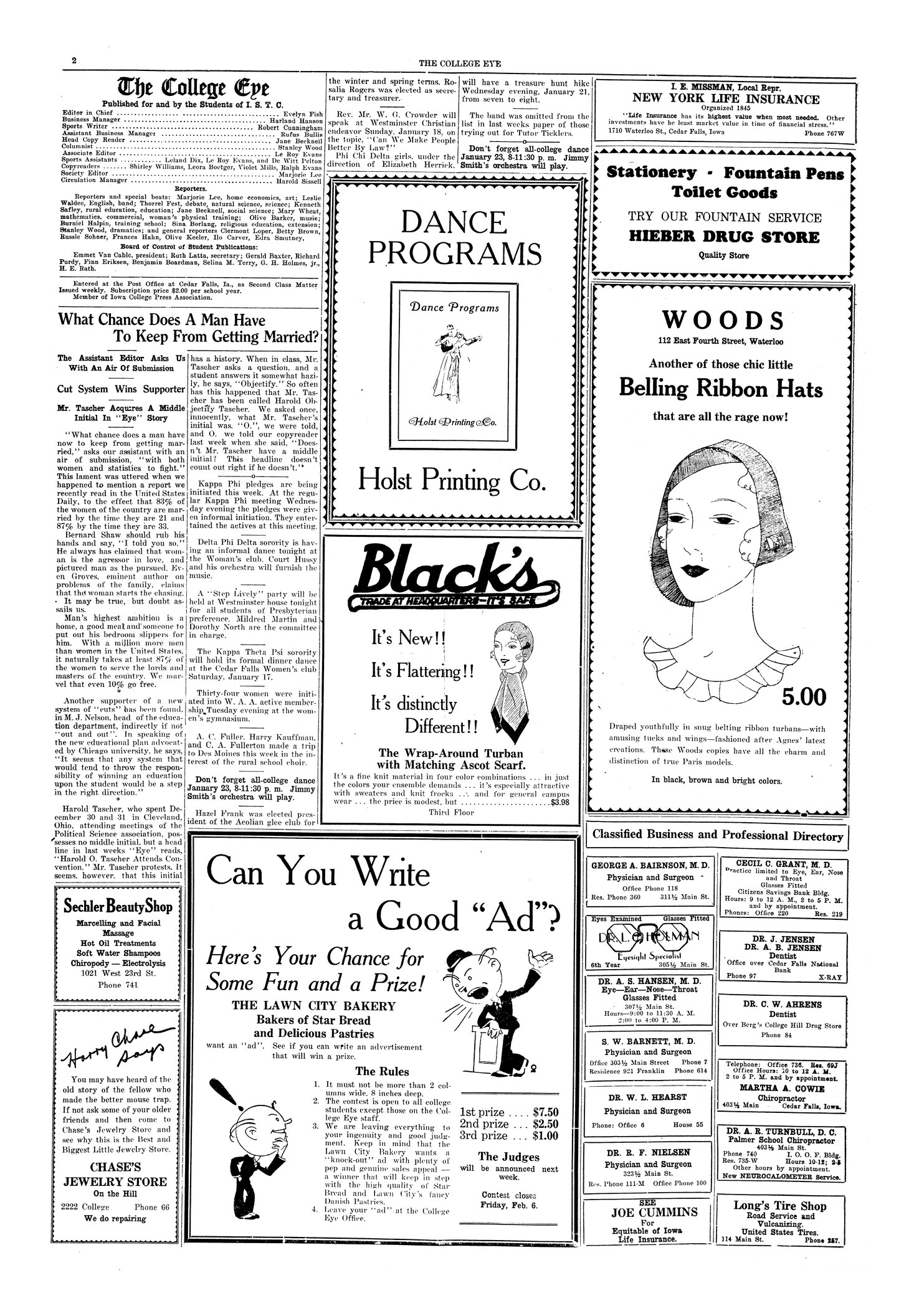 | What chance does a man have to keep from getting married?; the assistant editor asks us with an air of submission | Marriage statistics discussed as well as class attendance and the "cut" system. |