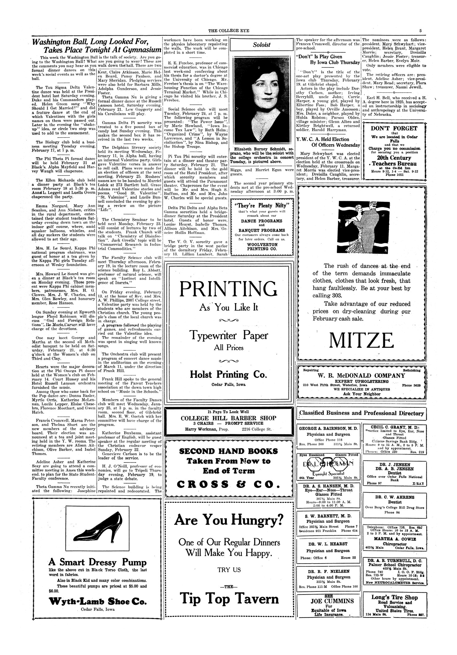 | Washington Ball, long looked for, takes place tonight at gymnasium | Campus social calendar. |