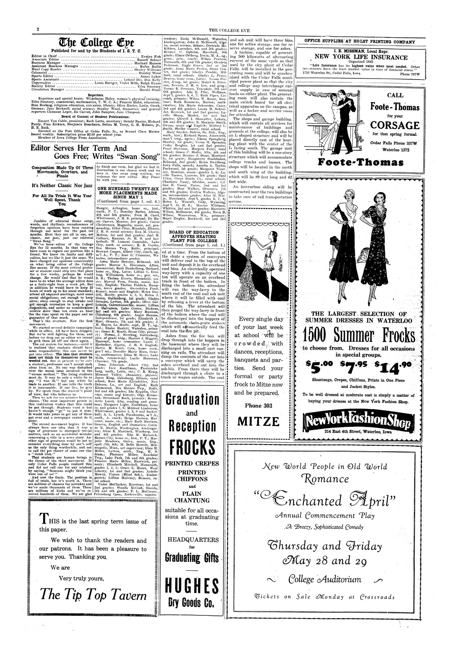 | Editor serves her term and goes free; writes "swan song" | Recap of editorial opinions throughout the year and a welcome to the new editor. |