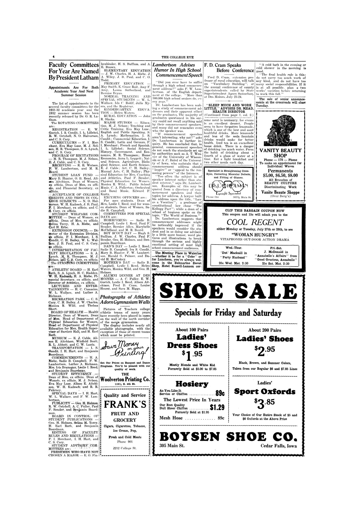 | Faculty committees for year are named by President Latham; appointments are for both academic year and next summer session | Roster of committee members. |