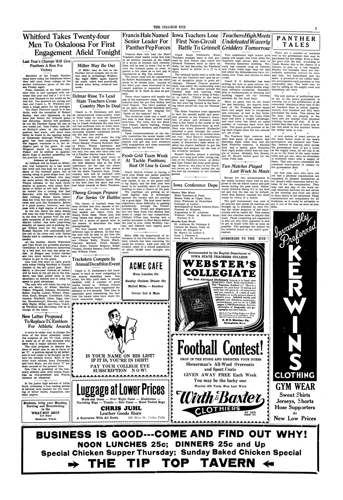 | Whitford takes twenty-four men to Oskaloosa for first engagement afield tonight | ISTC will compete against Penn College. |