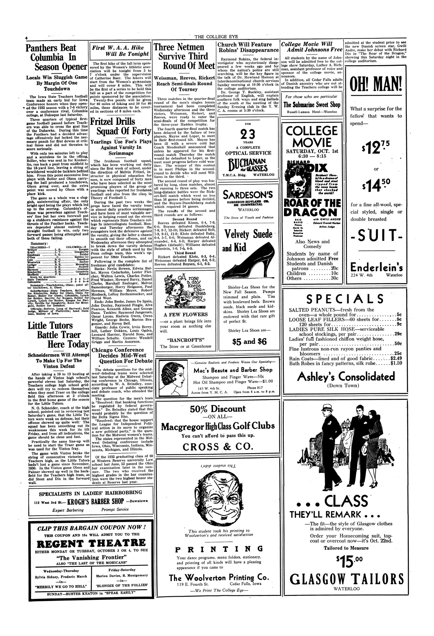 | College movie will admit Johnsons free | Will show "The Roar of the Dragon"; Cedar Falls Danes will also be admitted free. |