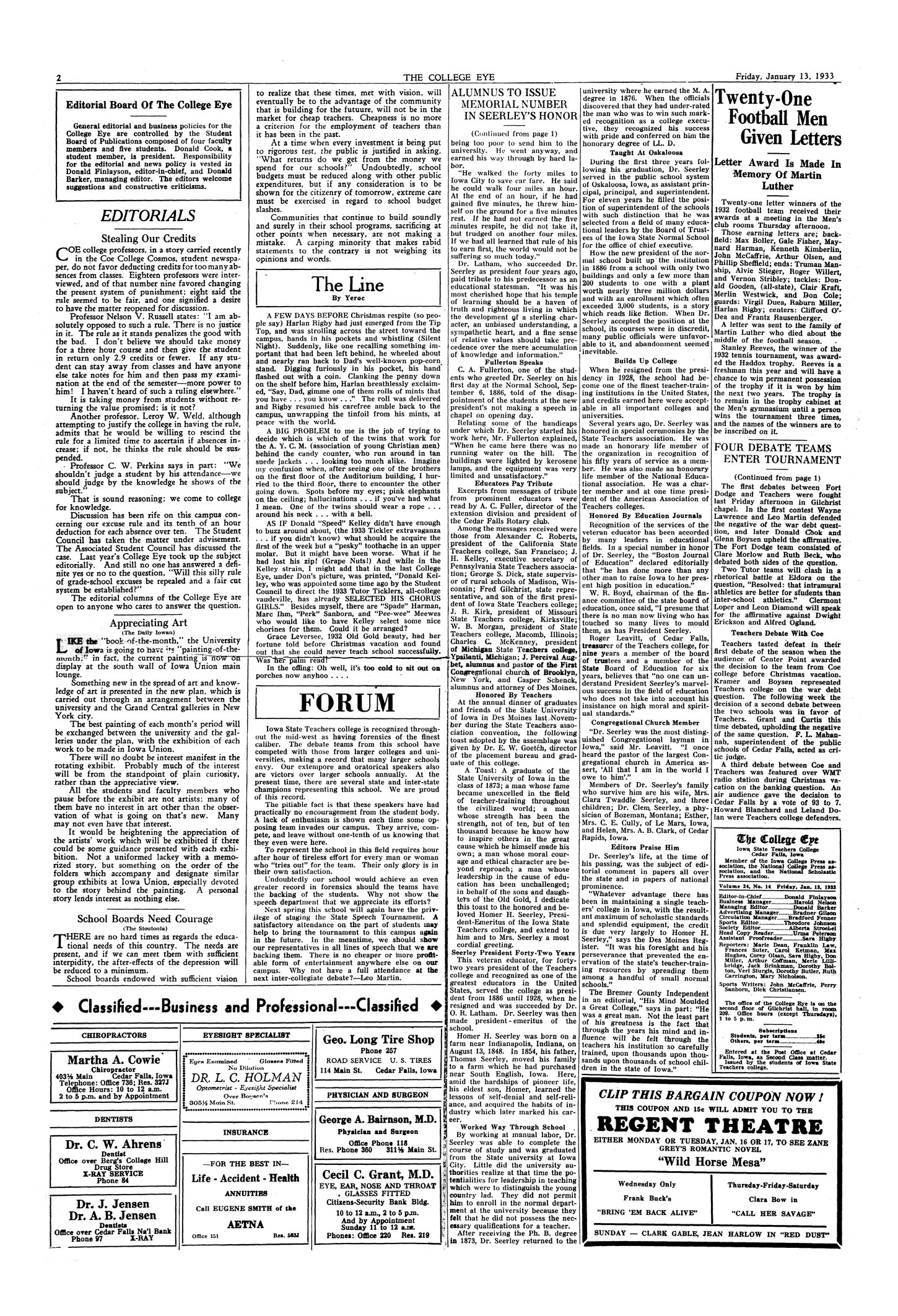 | Twenty-one football men given letters; letter award is made in memory of Martin Luther | List of letter winners. |