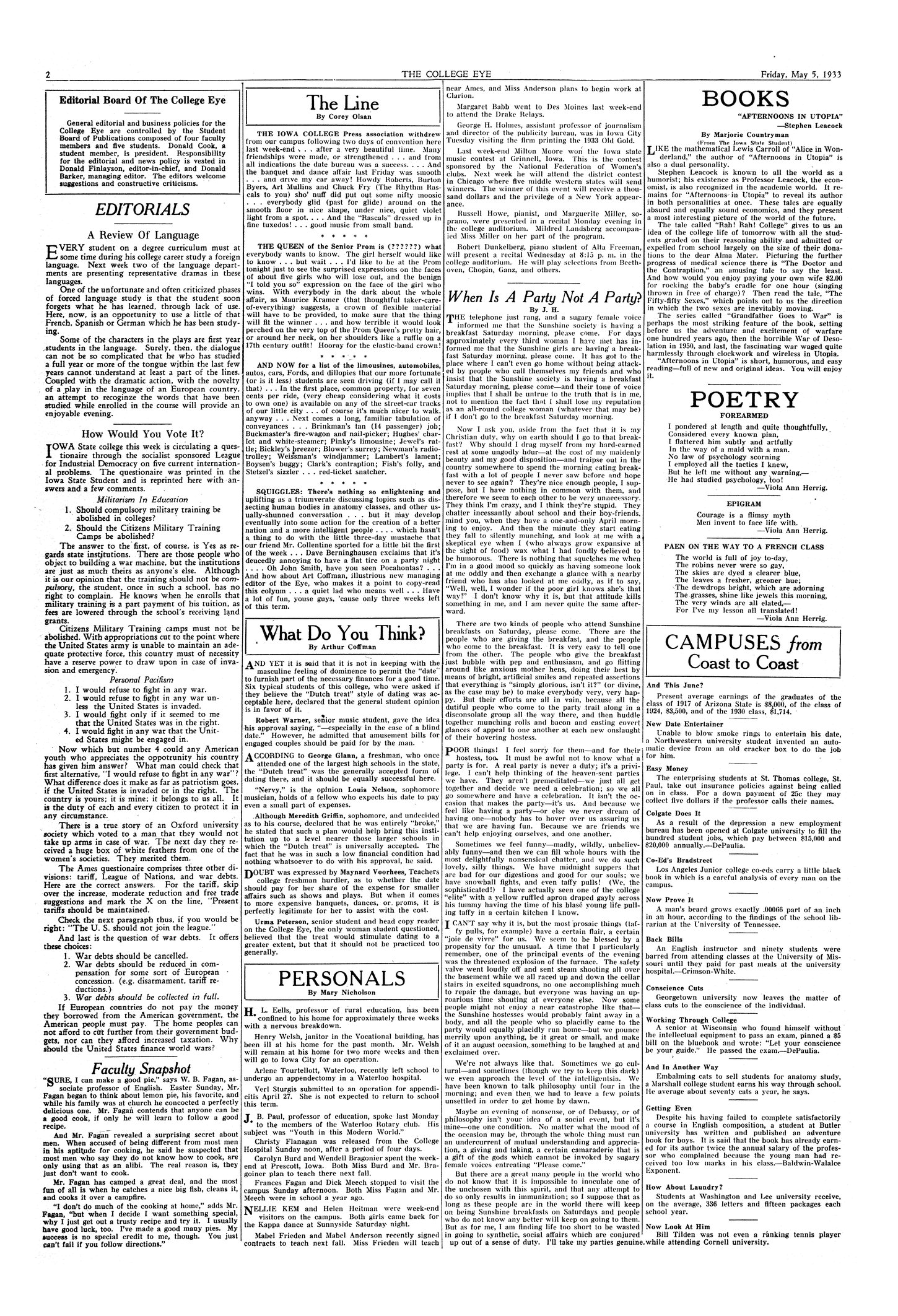 Editorials; how would you vote it? Iowa State College has a questionnaire for people to fill out regarding militarism in education and personal pacifism.