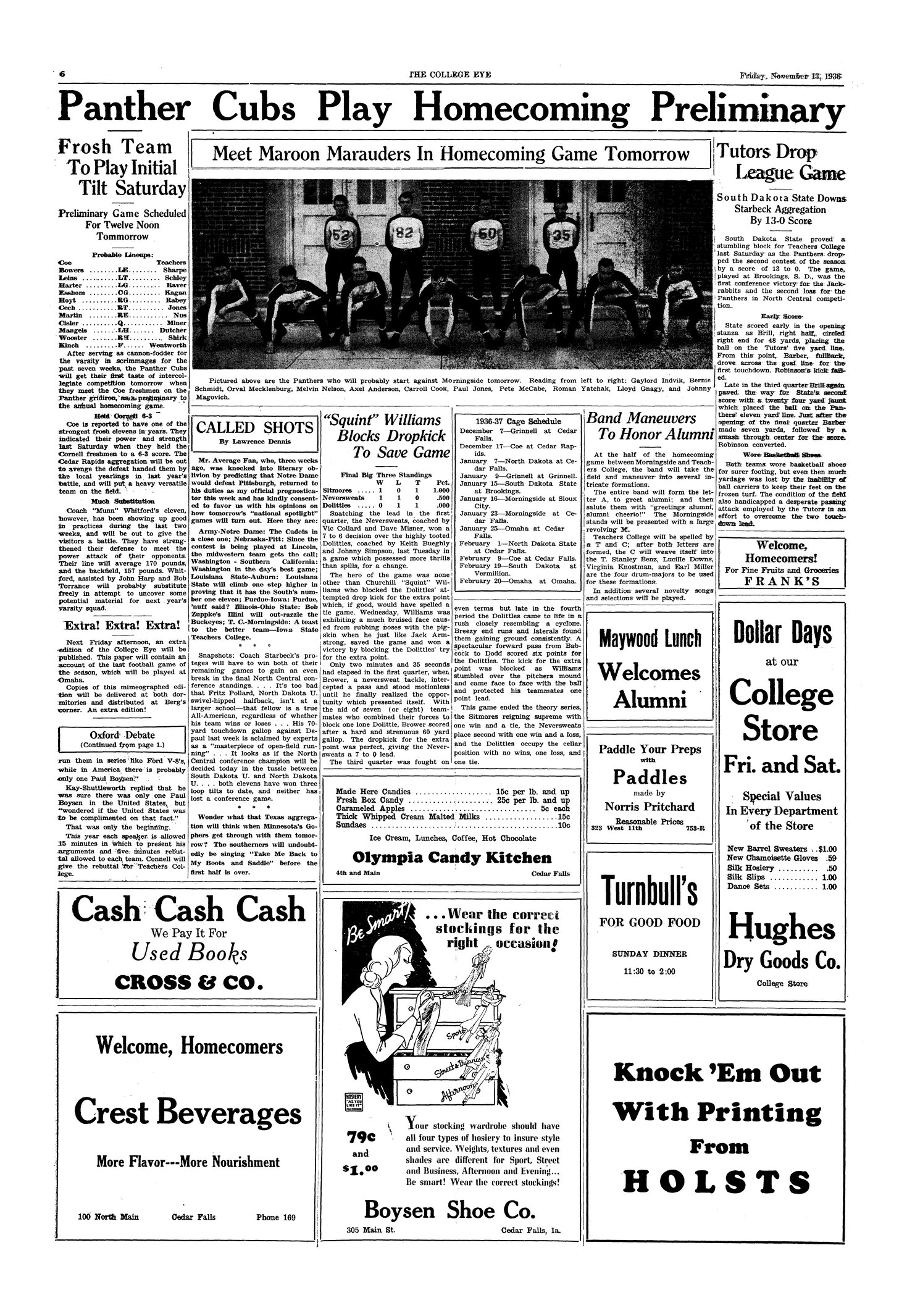 "Squint" Williams blocks dropkick to save game Churchill "Squint" Williams blocked an extra point which won the game for the Neversweats.
