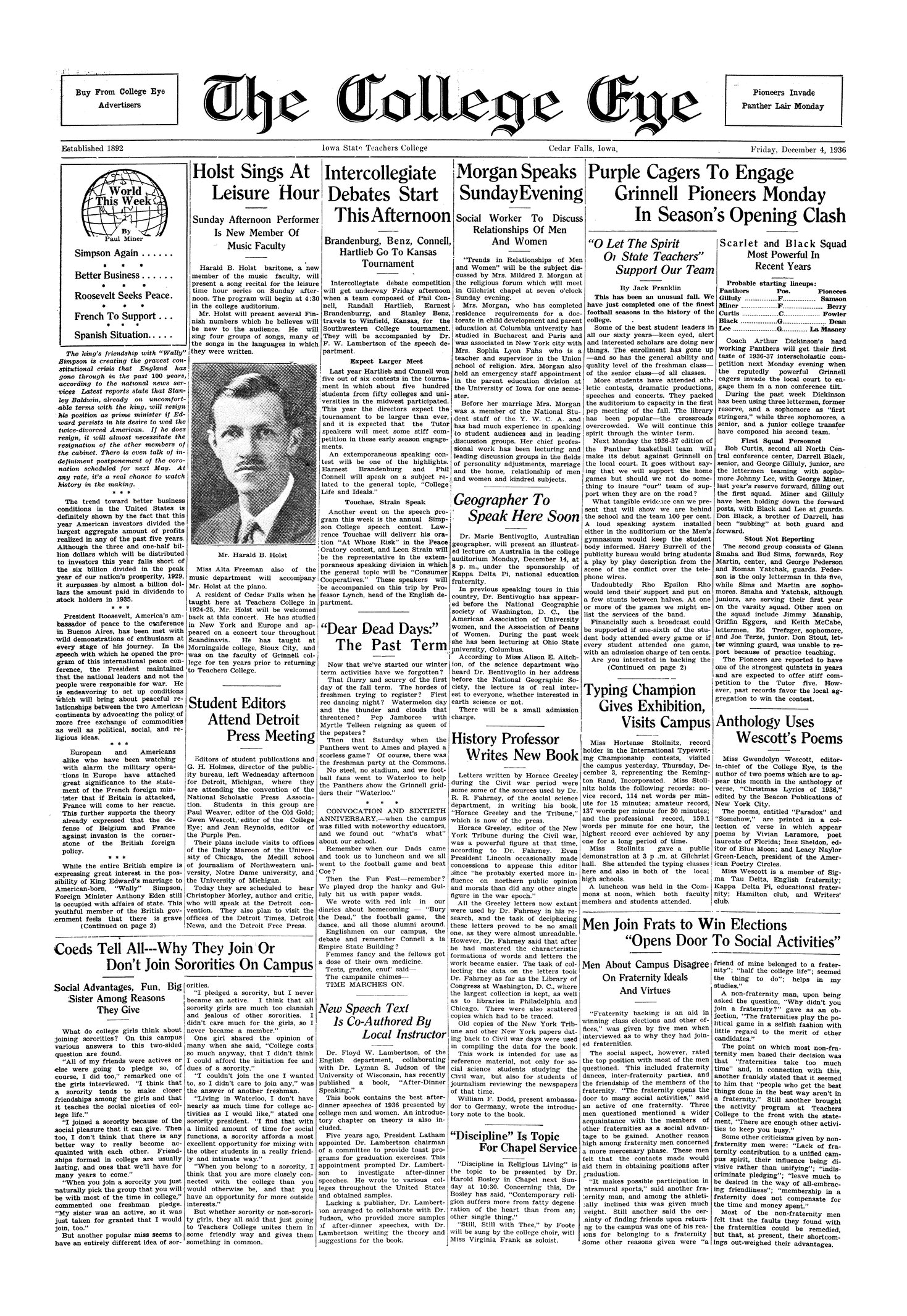 "Dear dead days:" the past term Quick look back at the fall 1936 term.