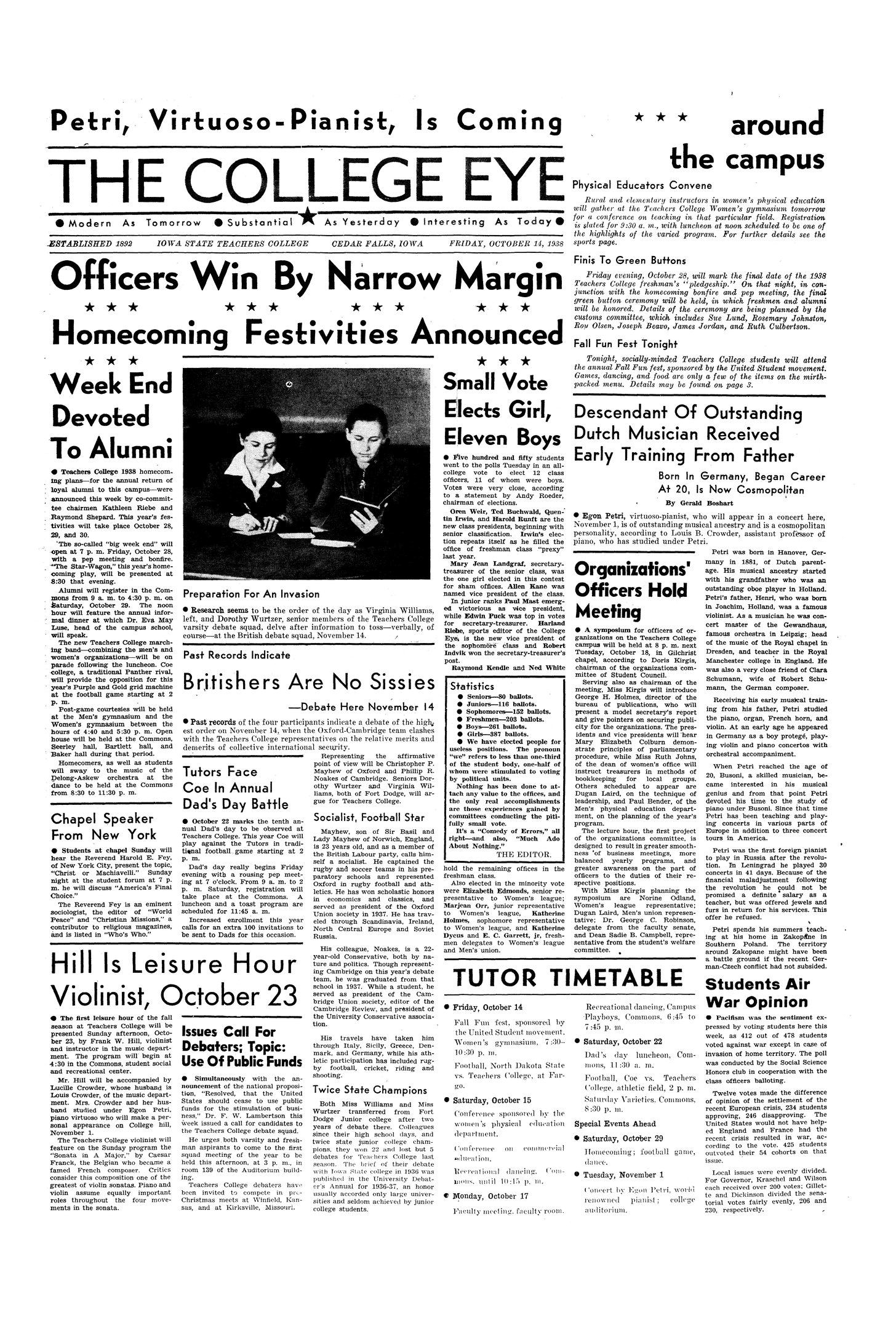 Officers win by narrow margin; small vote elects girl, eleven boys List of class officers.