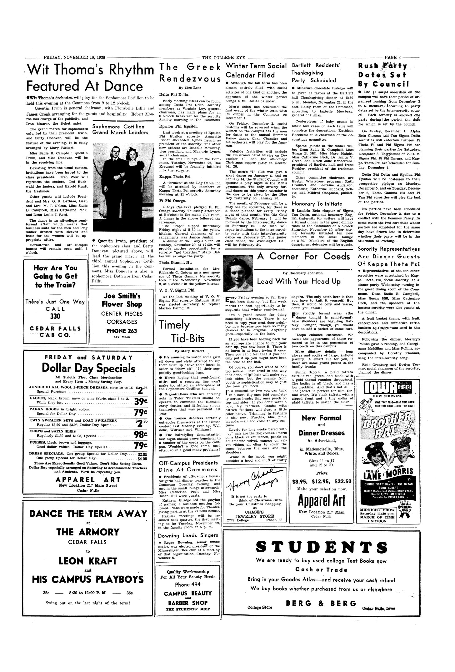 Wit Thoma's rhythm featured at dance Irwin and Donovan will lead the Grand March at the cotillion; photo.