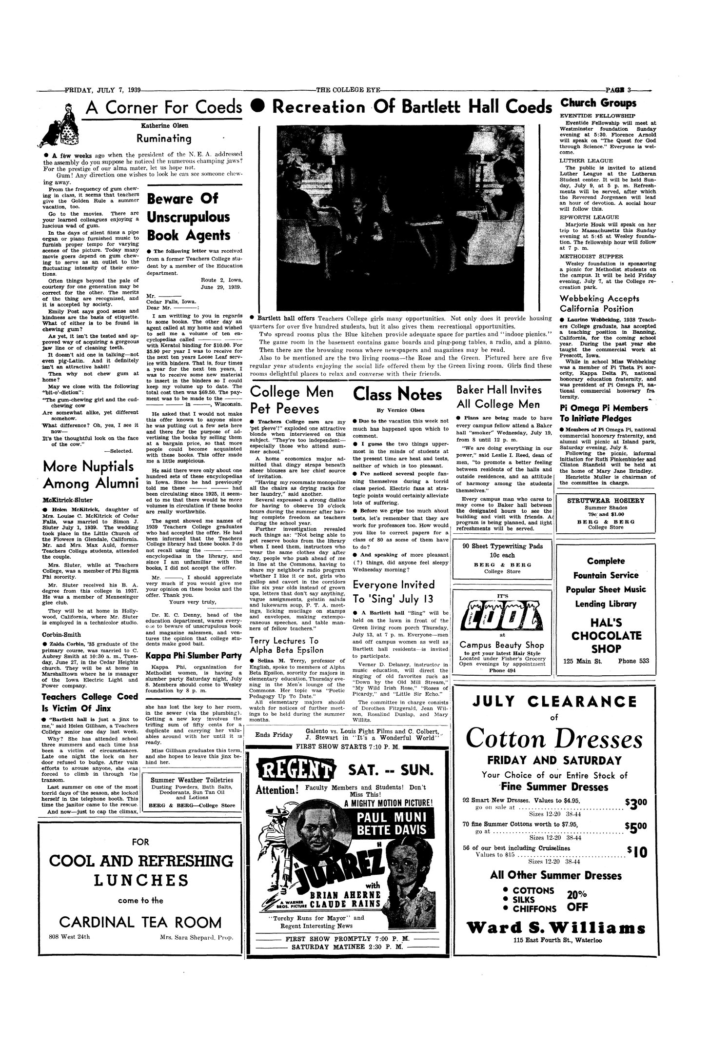 | More nuptials among alumni | Helen McKitrick married Simon J. Sluter; Zaida Corbin married C. Aubrey Smith. |