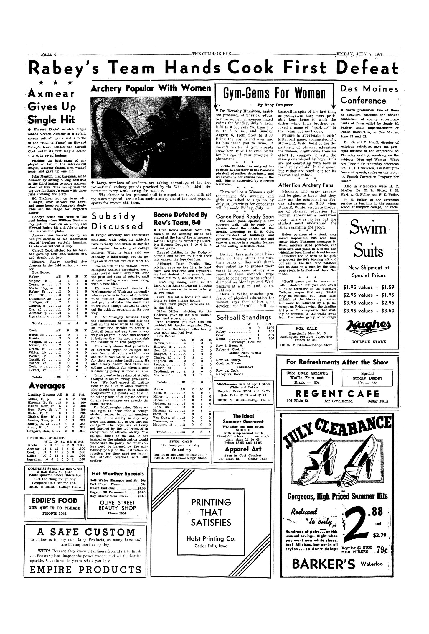 | Boone defeated by Rew's team, 8-0 | Rew's team has stayed at the top of the intramural softball team. The big inning came in the third when Rew's team hit a double with two men on the bases to bring in two runs. |