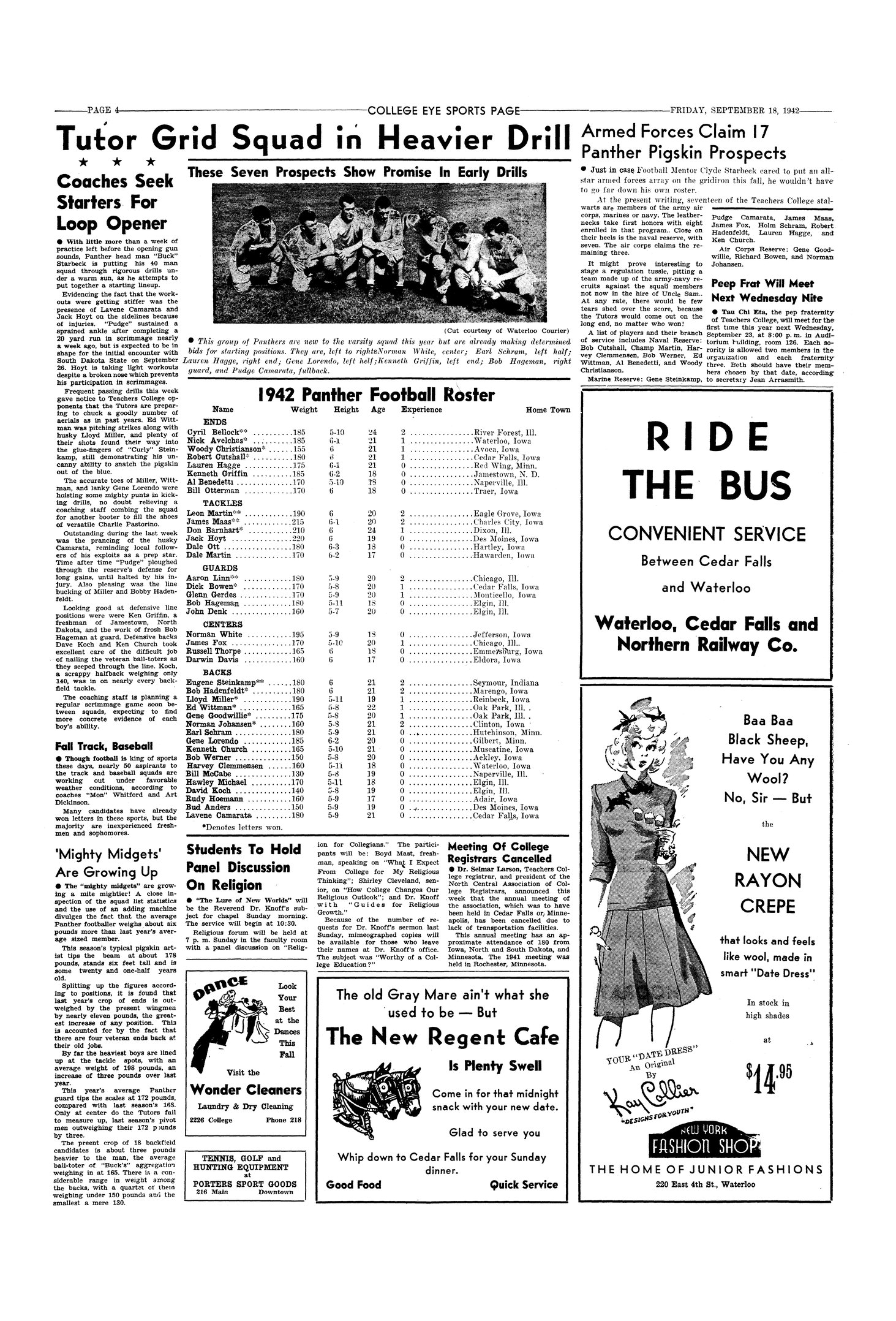 | 1942 Panther football roster | Football players for the 1942 season are listed. |