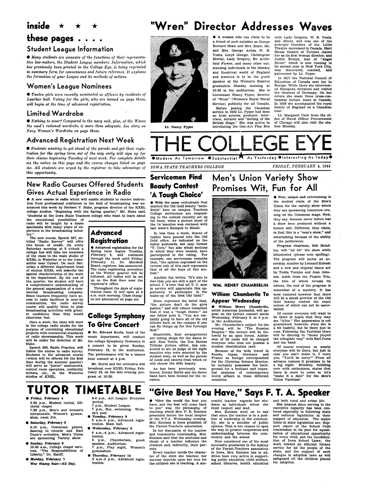 | "Wren" director addresses WAVES | Lieutenant Nancy Pyper will speak; photo. |