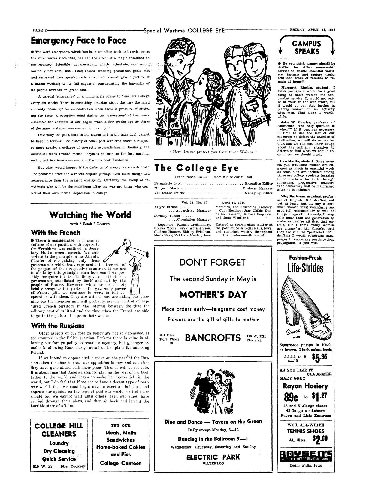 | Campus Speaks | Survey on whether or not women should be drafted for non-combat roles. |