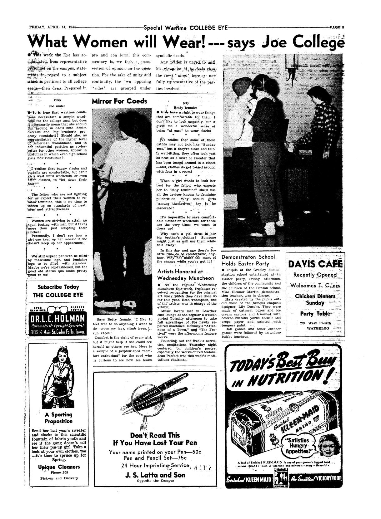 What women will wear!---says Joe College Students give opinion on the clothing choices of women.