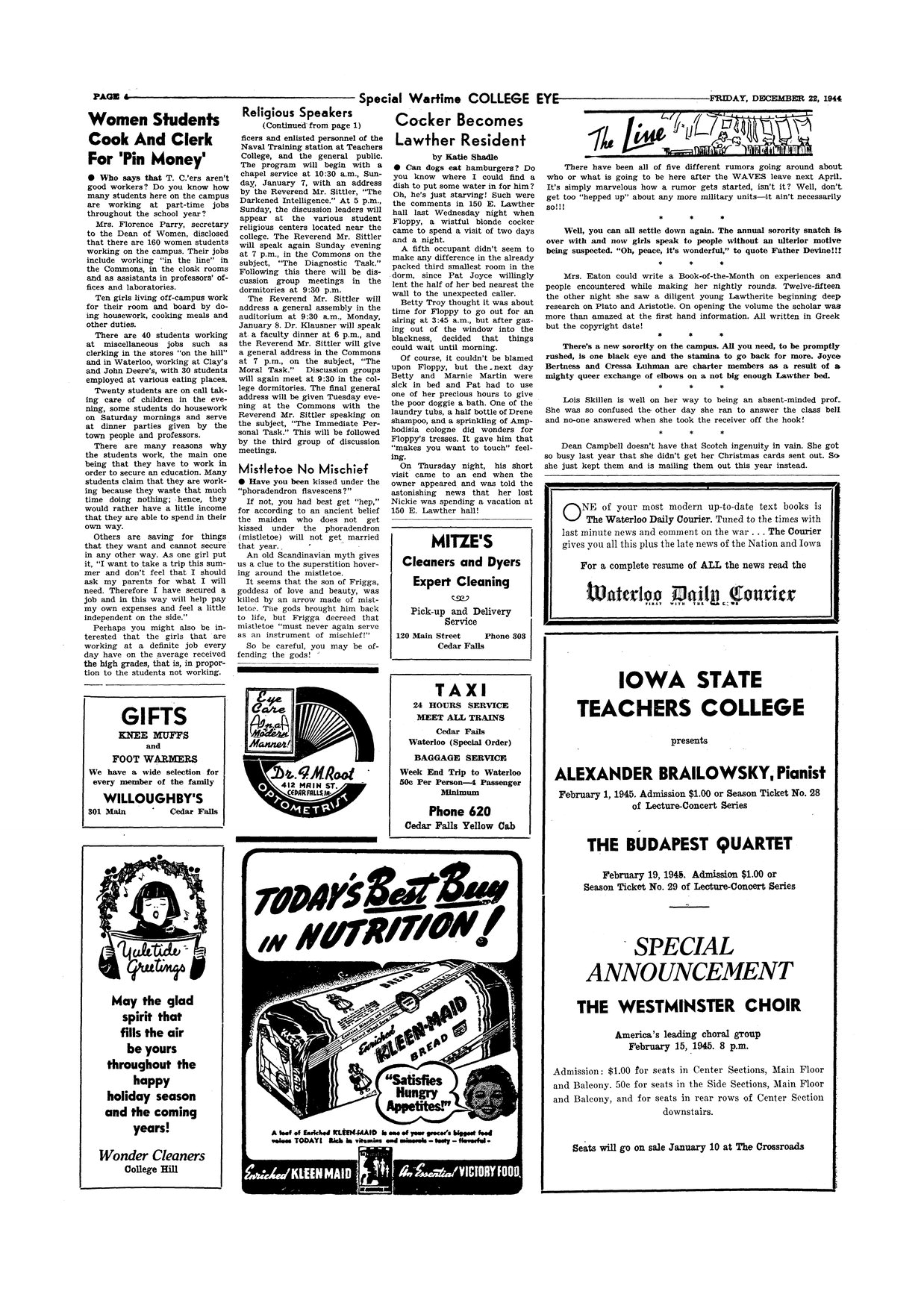 | Women students cook and clerk for 'pin money' | Florence Parry describes some of the jobs that students have. |