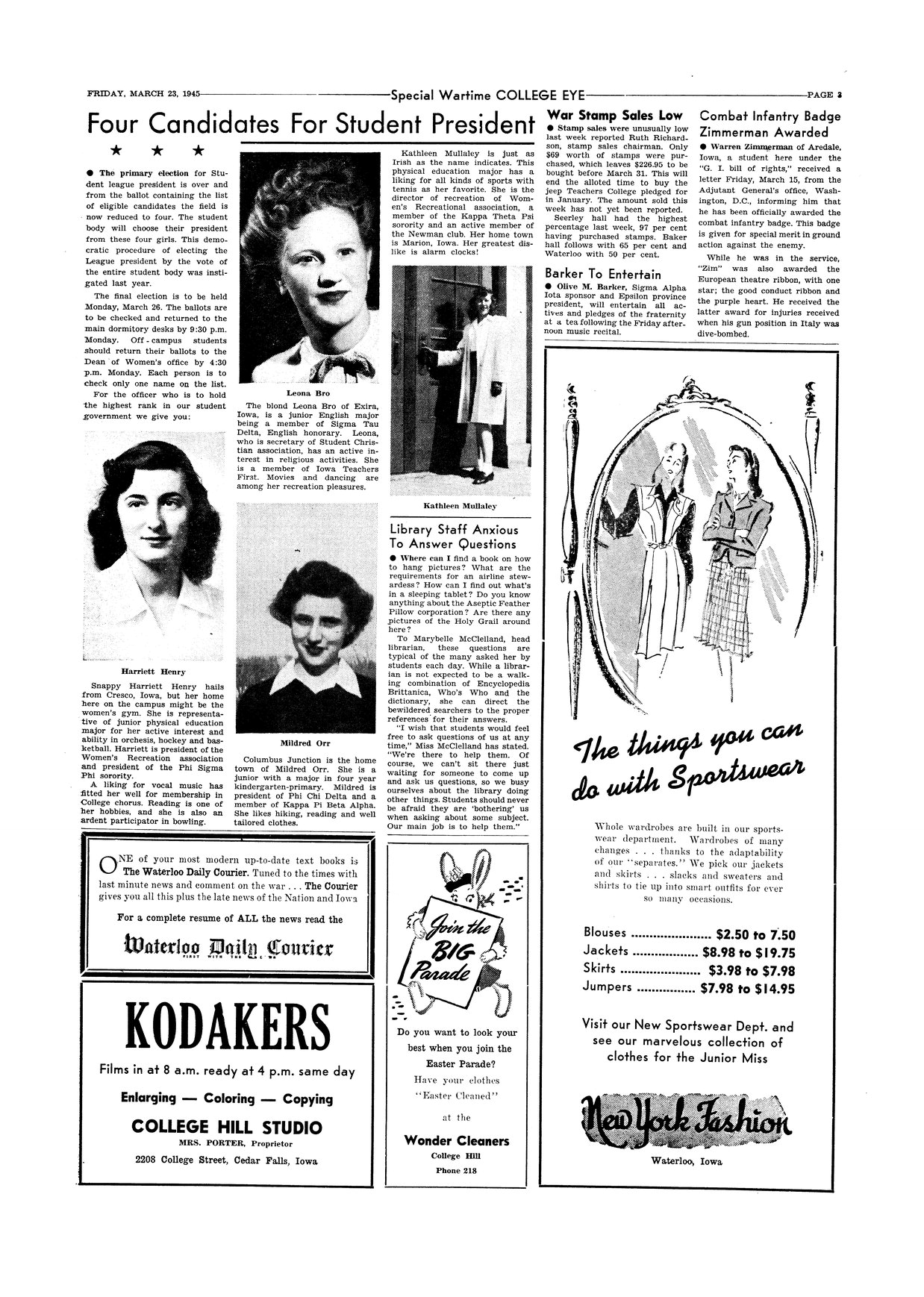 | Four candidates for student president | Profiles of the four candidates; photo. |