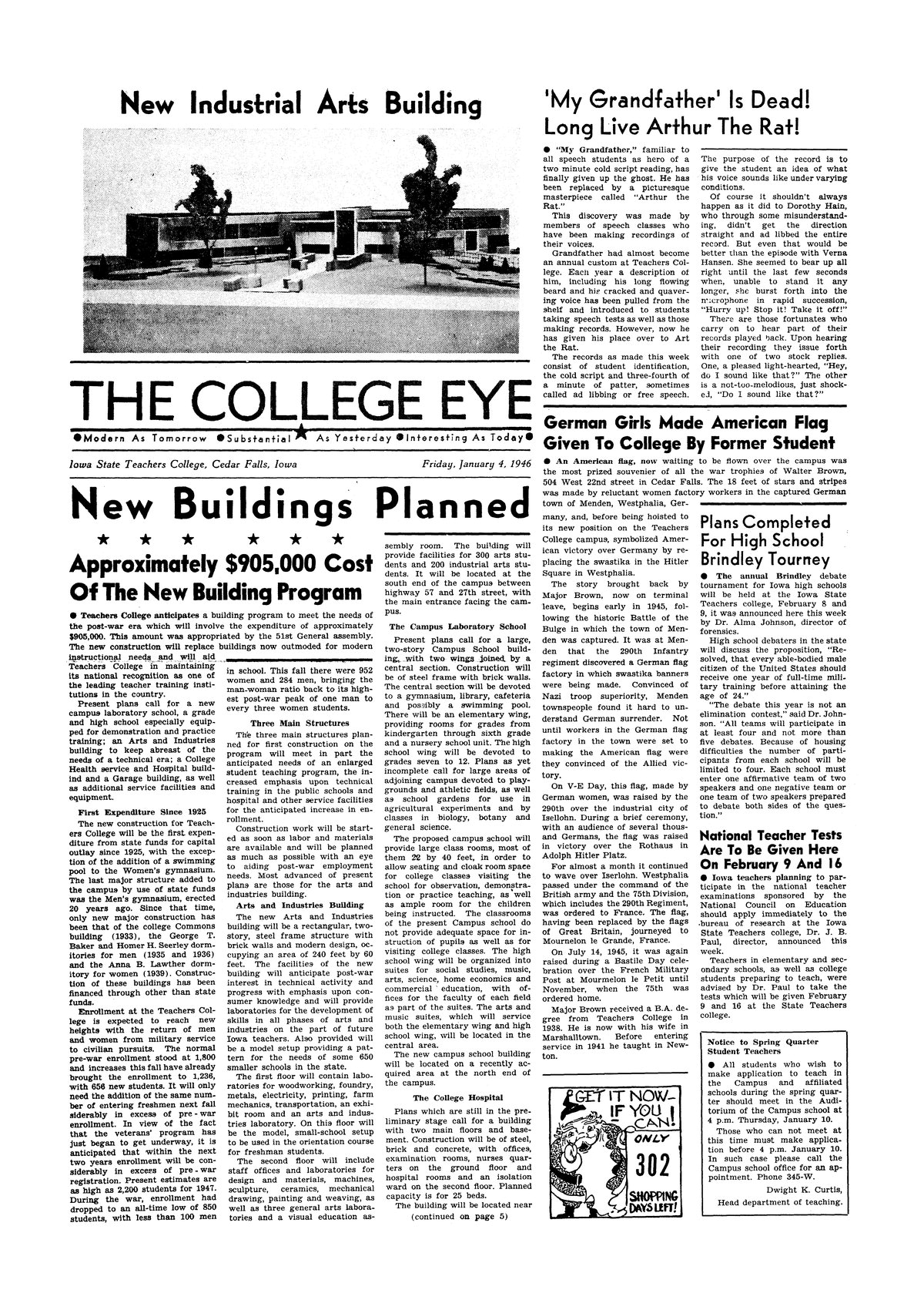 | New buildings planned; approximately $905,000 cost of the new building program | Lengthy descriptions of new Arts and Industries Building, College Hospital, Laboratory School, and garage; photo. |