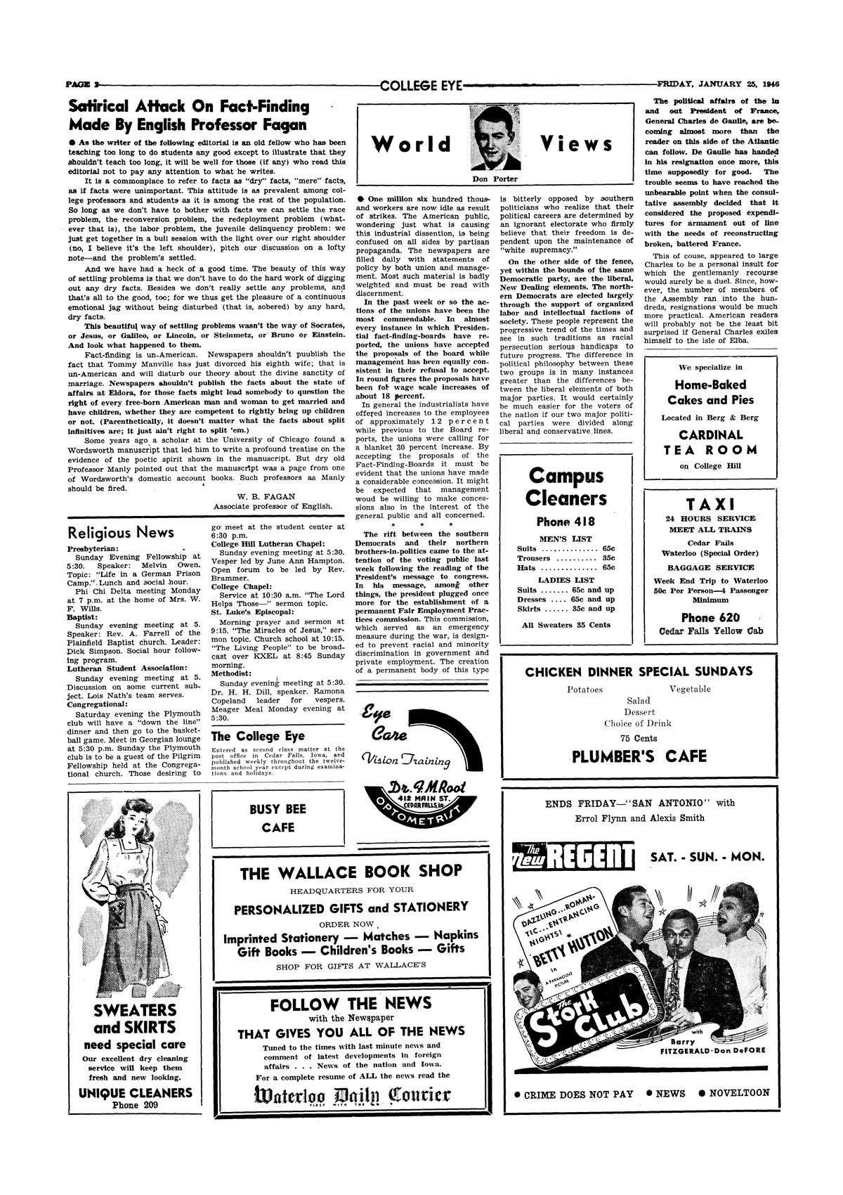 | World Views | Comments on the union strikes, the idea of permanent Fair Employment Practices commission, and the resignation of France's President Charles de Gaulle. |