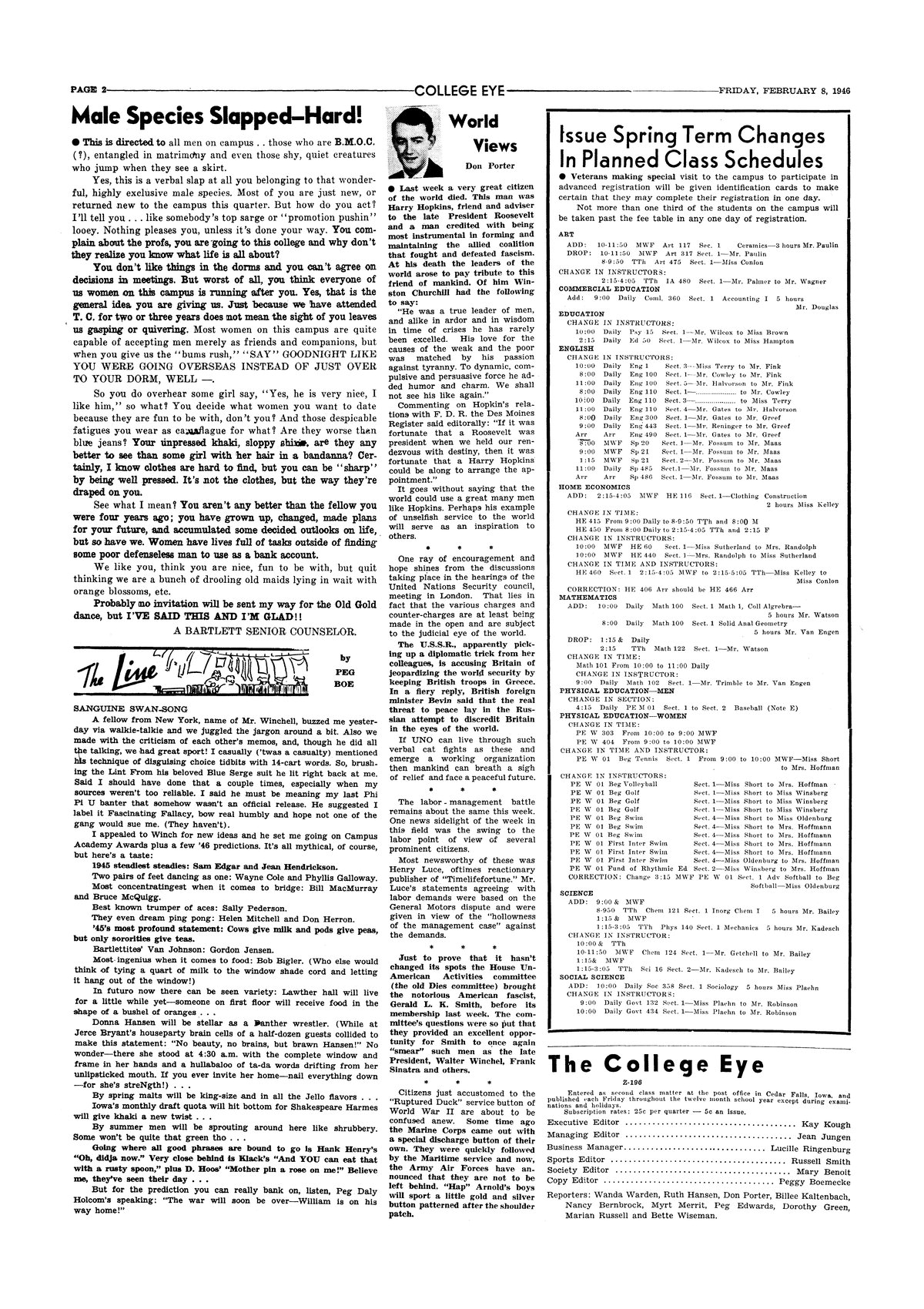 | Male species slapped-hard! | Angry student comments on the attitude of the men on TC campus after returning from war. |