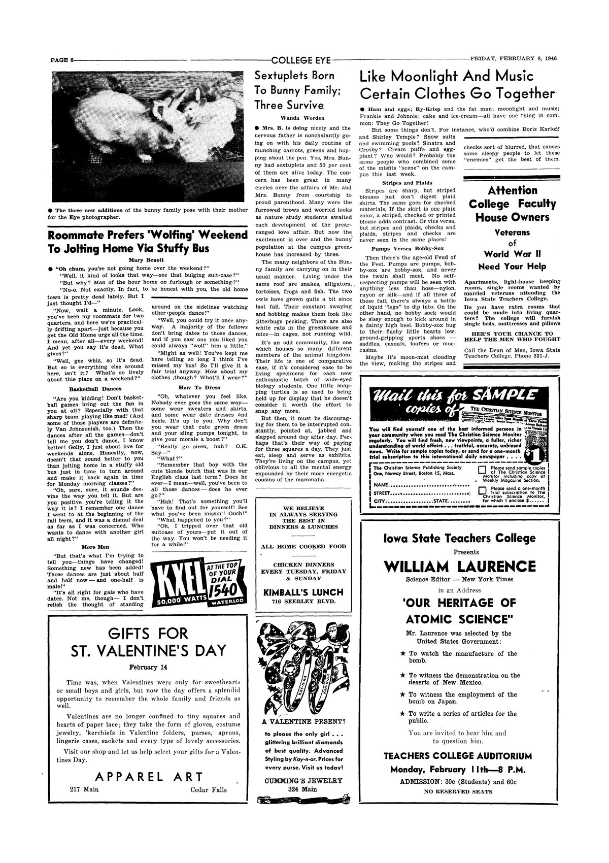 | Sextuplets born to bunny family; three survive | A look at some of the animals in the Greenhouse; photo. |