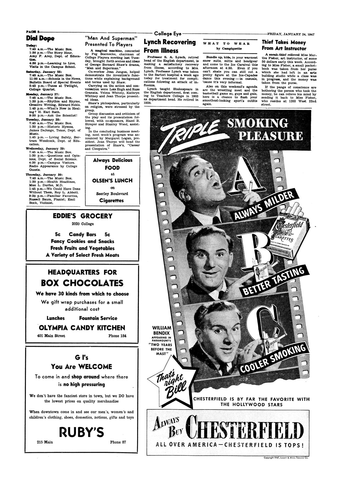 | Thief takes money from art instructor | $50 stolen from Martha Fisher. |