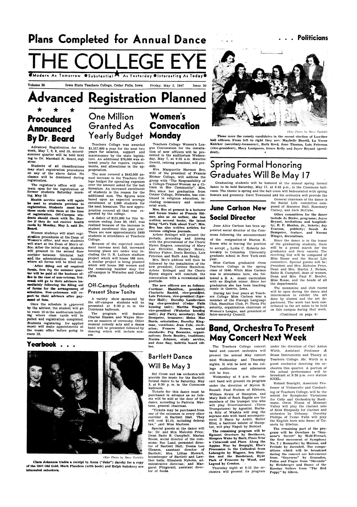 | Women's convocation Monday | For installation of new Women's League officers; list of officers. |