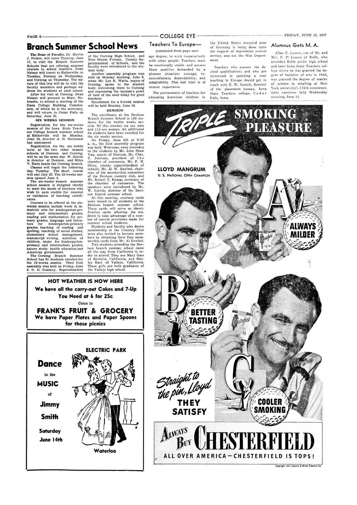 | Alumnus gets M. A. | Allen Lomen receives master's degree from New York University. |