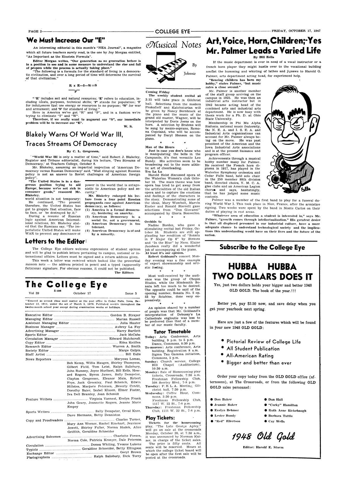 | Blakely warns of World War III, traces streams of democracy | Excerpts from address by DMR writer Robert J. Blakely. |