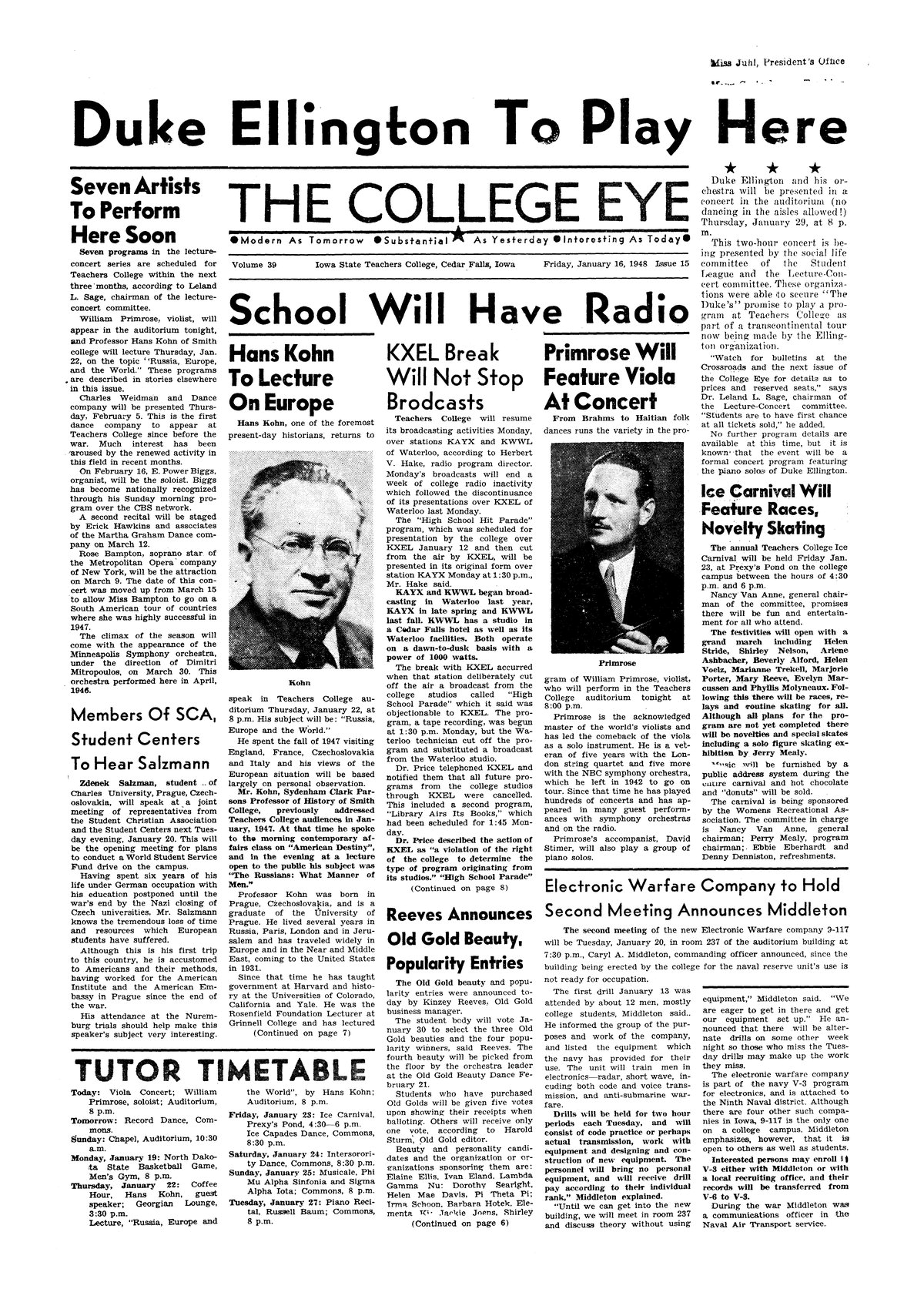 Hans Kohn to lecture on Europe Profile of Hans Kohn; photo.