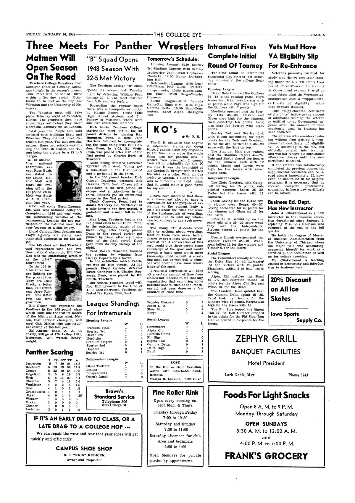 | "B" squad opens 1948 season with 32-5 mat victory | Panthers defeated William Penn College, 32-5. |