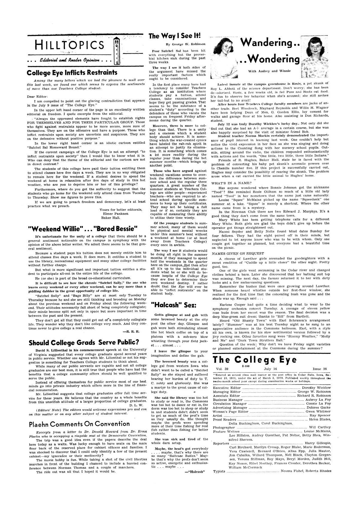 | Wandering . . . Wondering | Campus gossip. |
