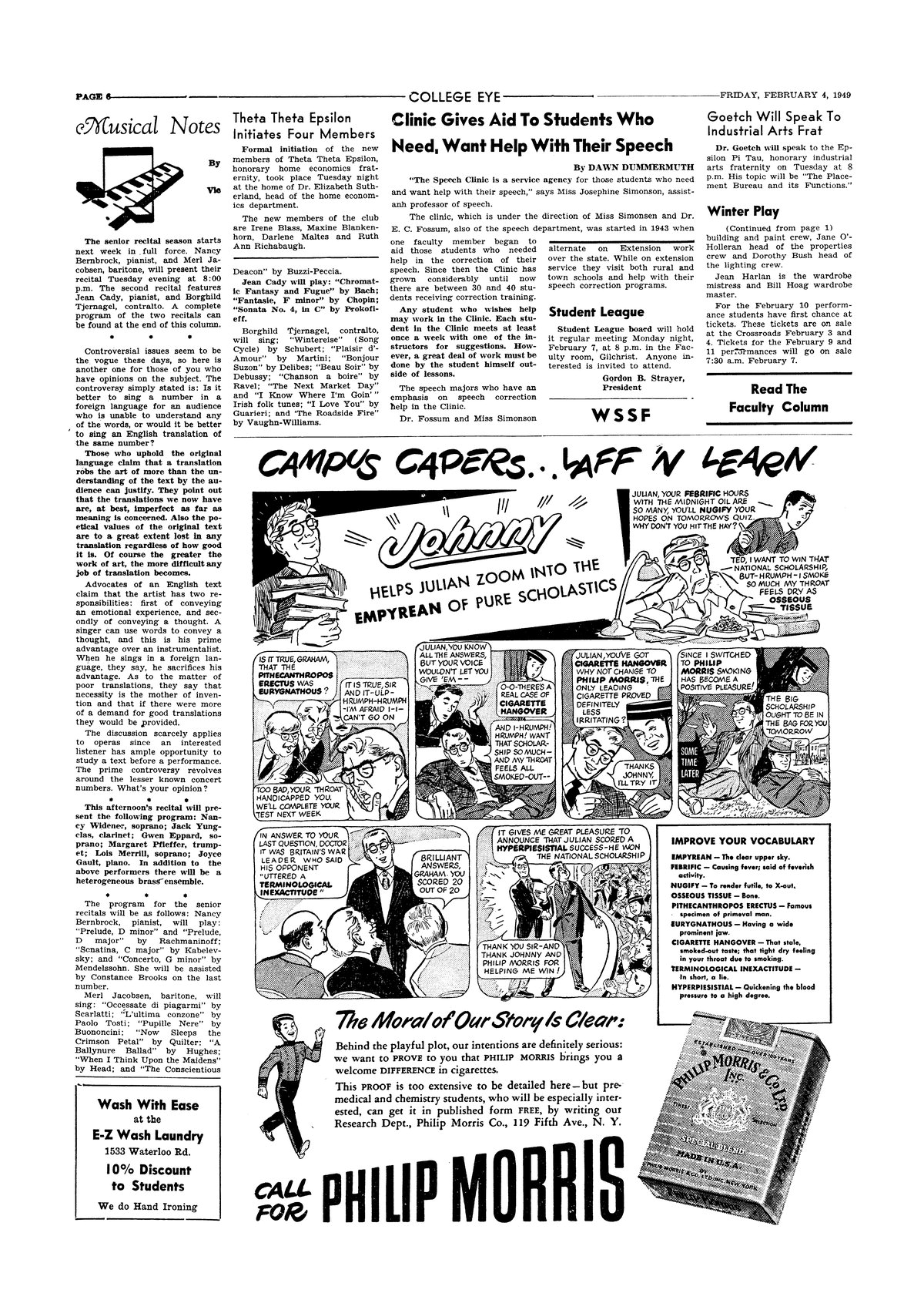 Musical Notes Discusses music students, faculty members, and upcoming musical events.