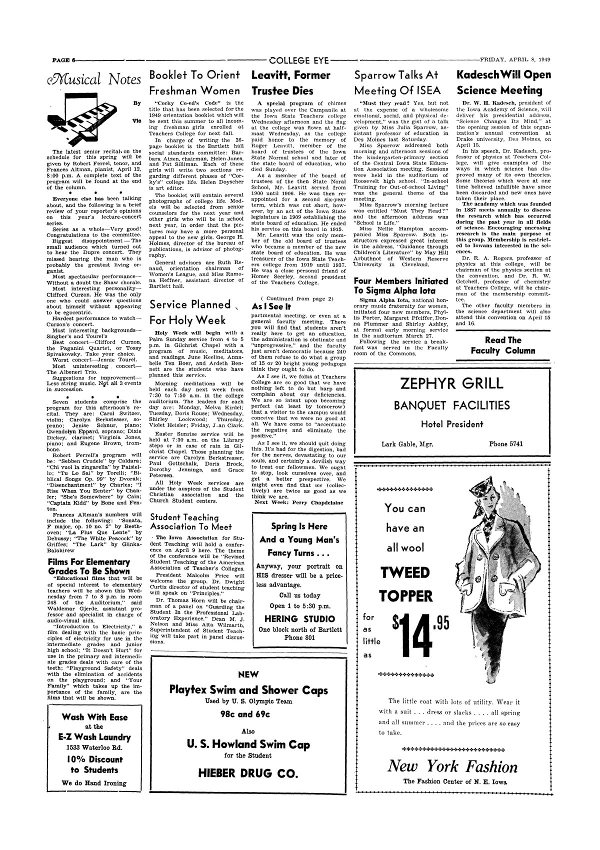 Musical Notes Discusses music students, faculty members, and upcoming musical events.