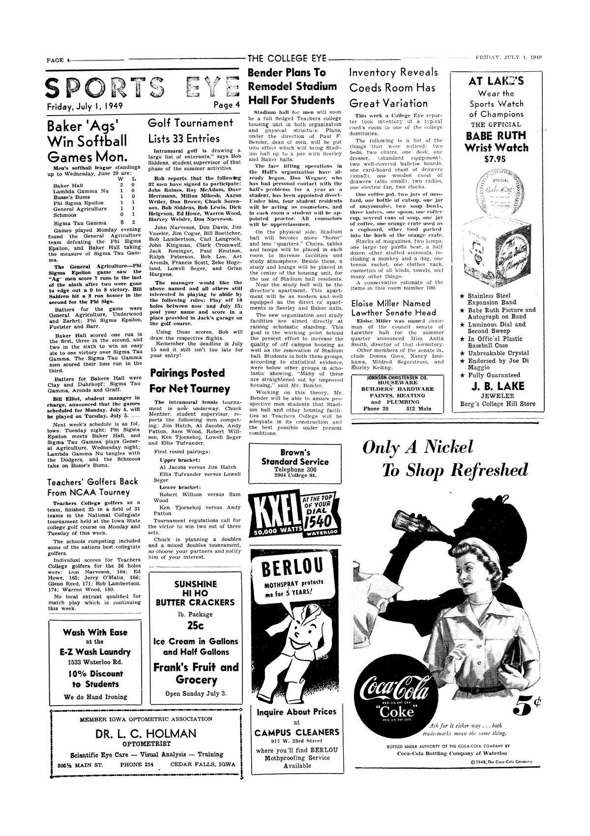 | Baker 'Ags' win softball games Mon. | Summaries of the games between General Agriculture and Phi Sigma Epsilon and Baker Hall and Sigma Tau Gamma. |