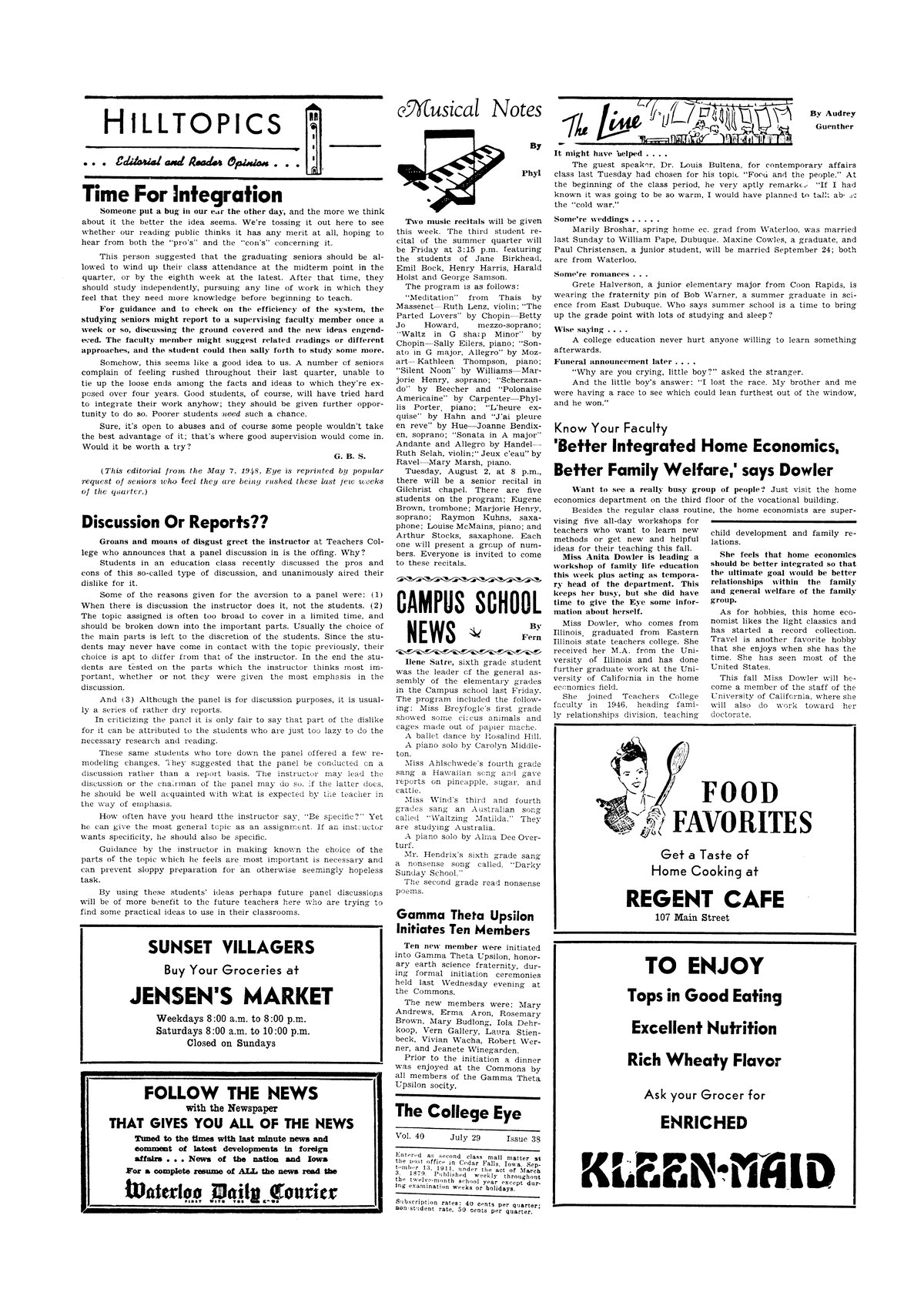 | Musical Notes | Describes the programs for upcoming musical recitals. |