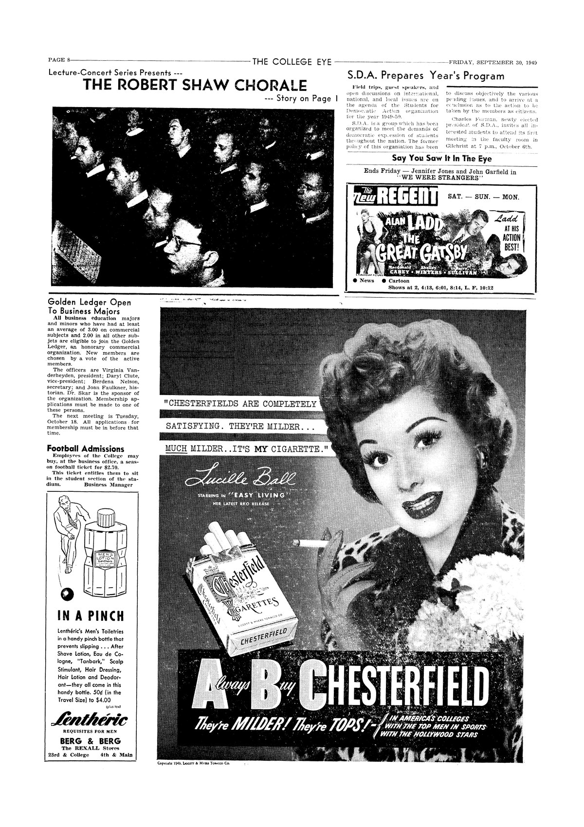 | Lecture-Concert Series presents--The Robert Shaw Chorale - - - story on pg. 1 | Robert Shaw Chorale performs. |