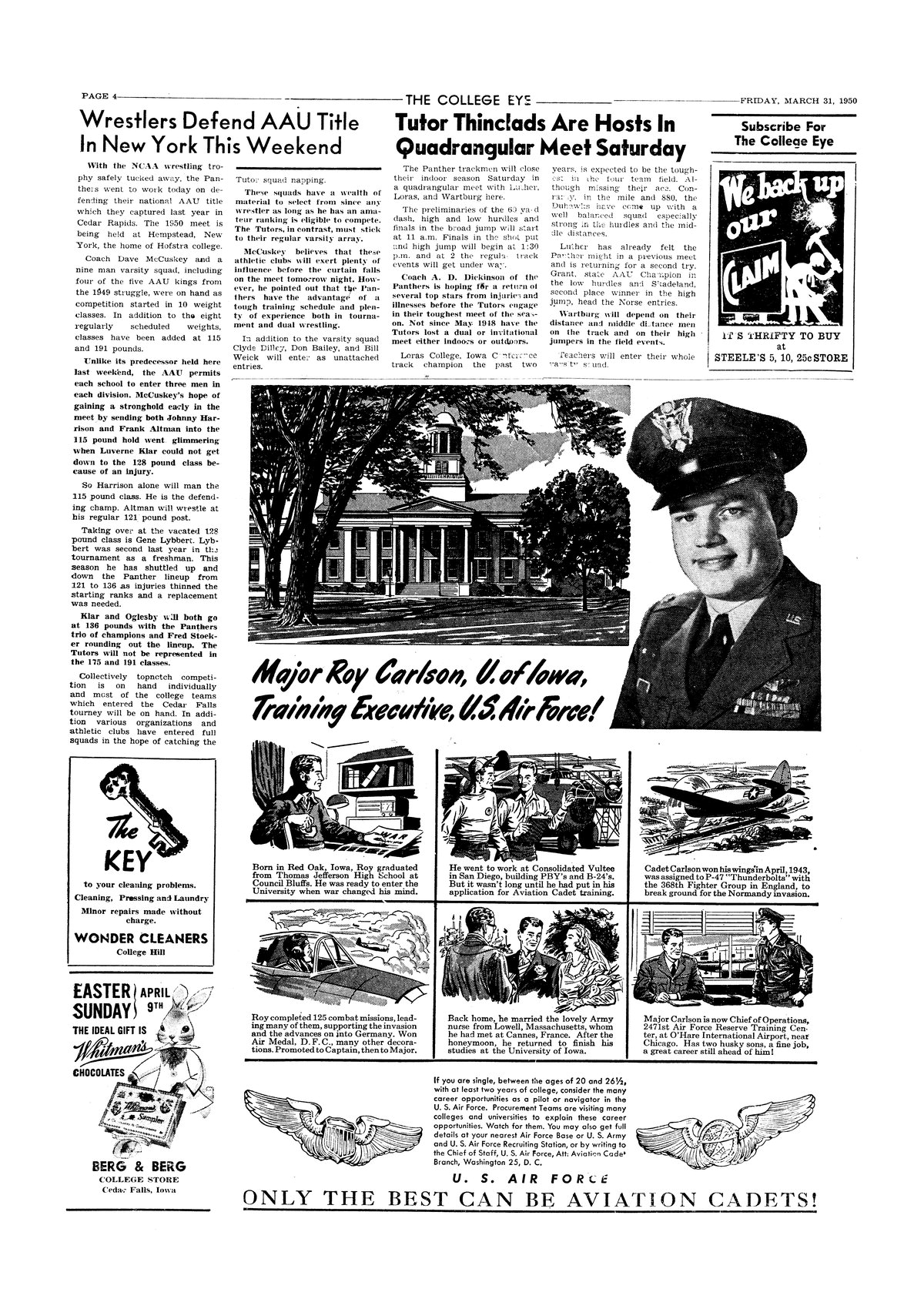 | Tutor Thinclads are hosts in quadrangular meet Saturday | Included in the meet are Luther, Loras, and Wartburg. |