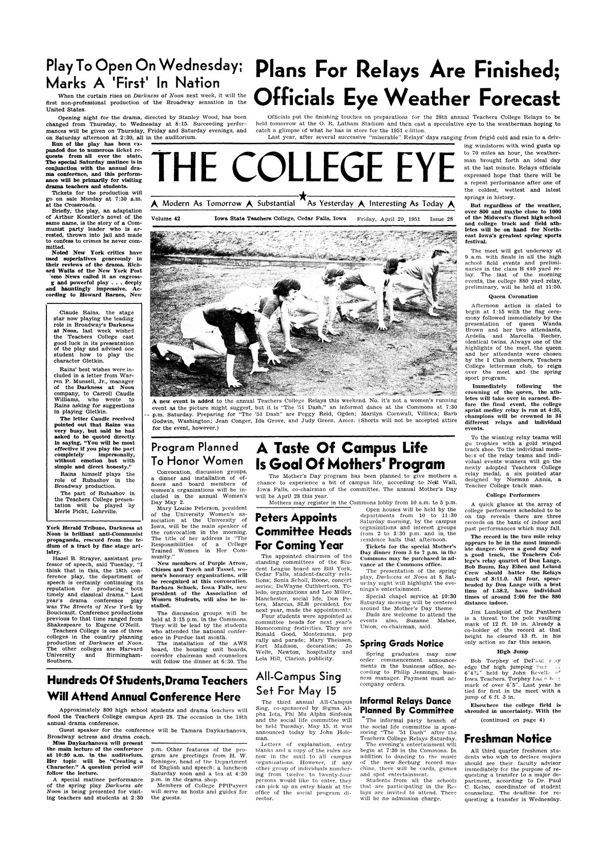 | Plans for relays are finished; officials eye weather forecast | A look at the upcoming Teachers College Relays; photo. |