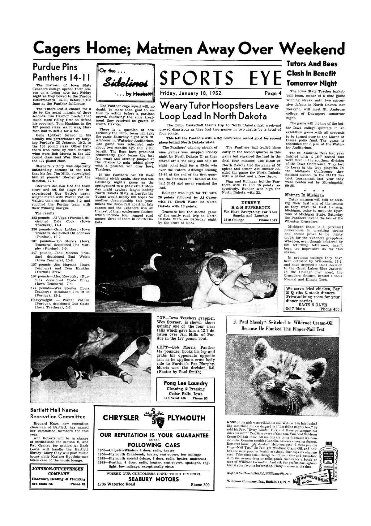 | Weary Tutor hoopsters leave loop lead in North Dakota | Summary of the two games recently held in North Dakota. |